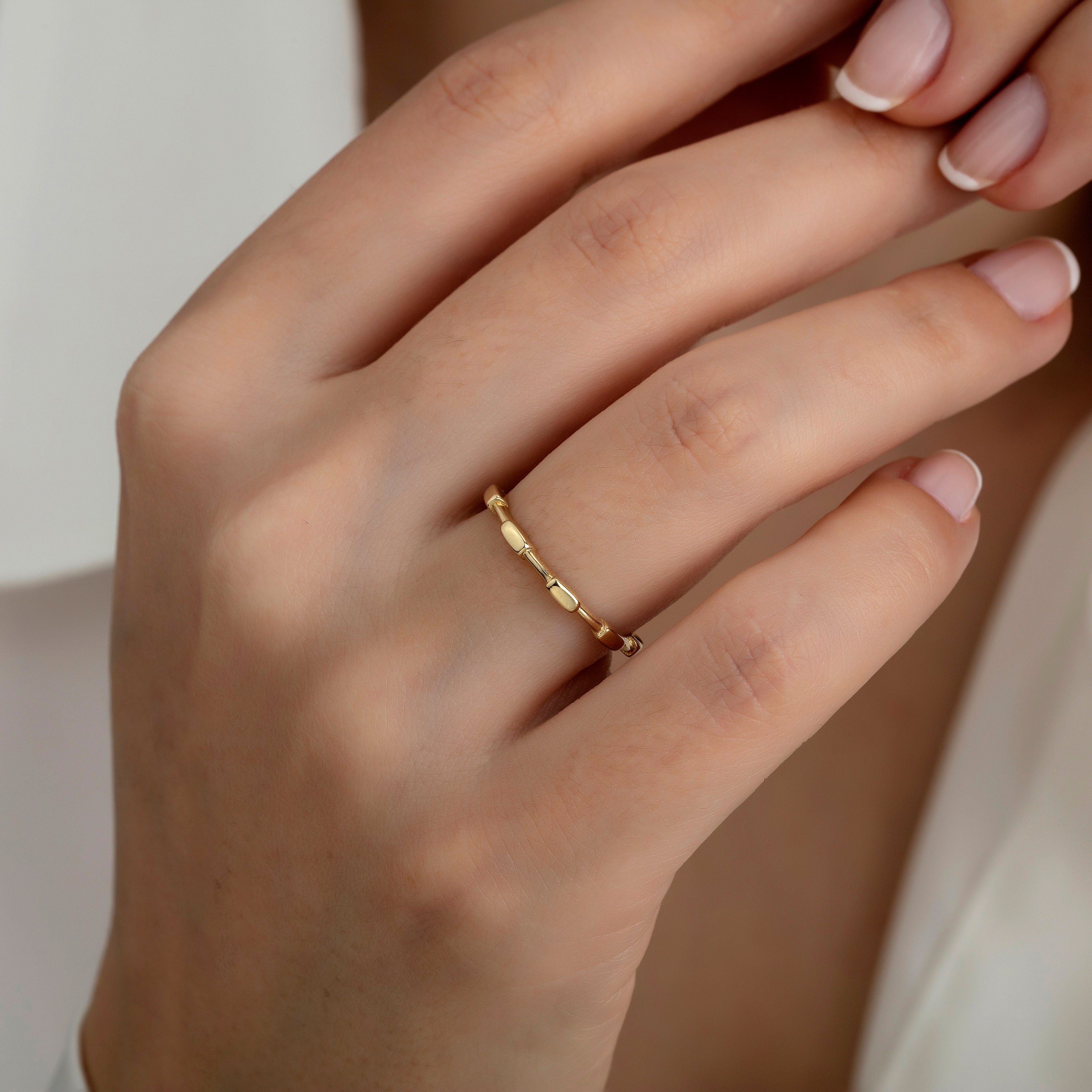 Understated and versatile, this dainty ring blends clean lines and subtle texture, an essential for modern stacking.