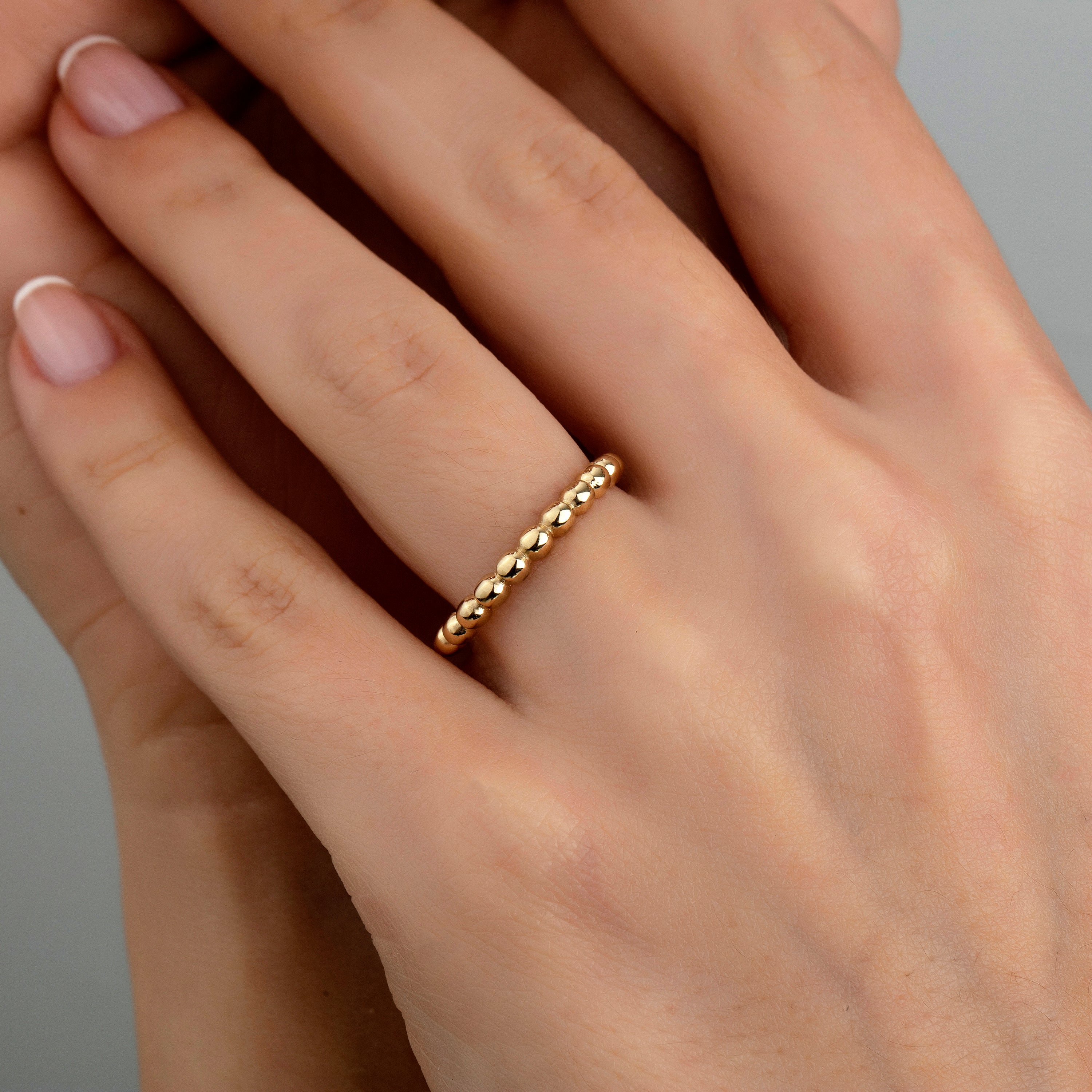14K Gold Half Round Beaded Stackable Dainty Ring