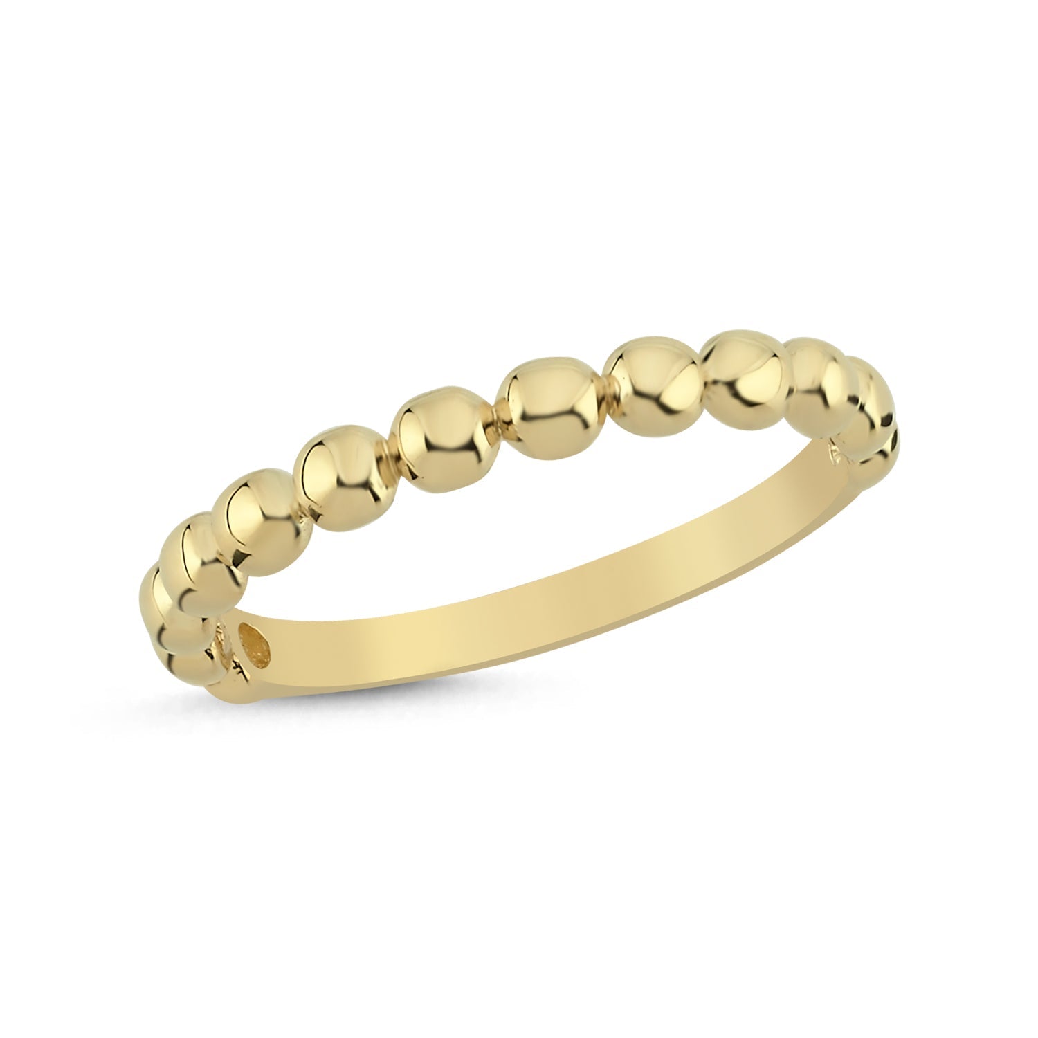Add a hint of sculptural charm to your everyday with this 14K gold beaded stackable ring. Featuring a half-round silhouette with polished bead-like links, it effortlessly blends elegance and versatility for a refined stacking statement.