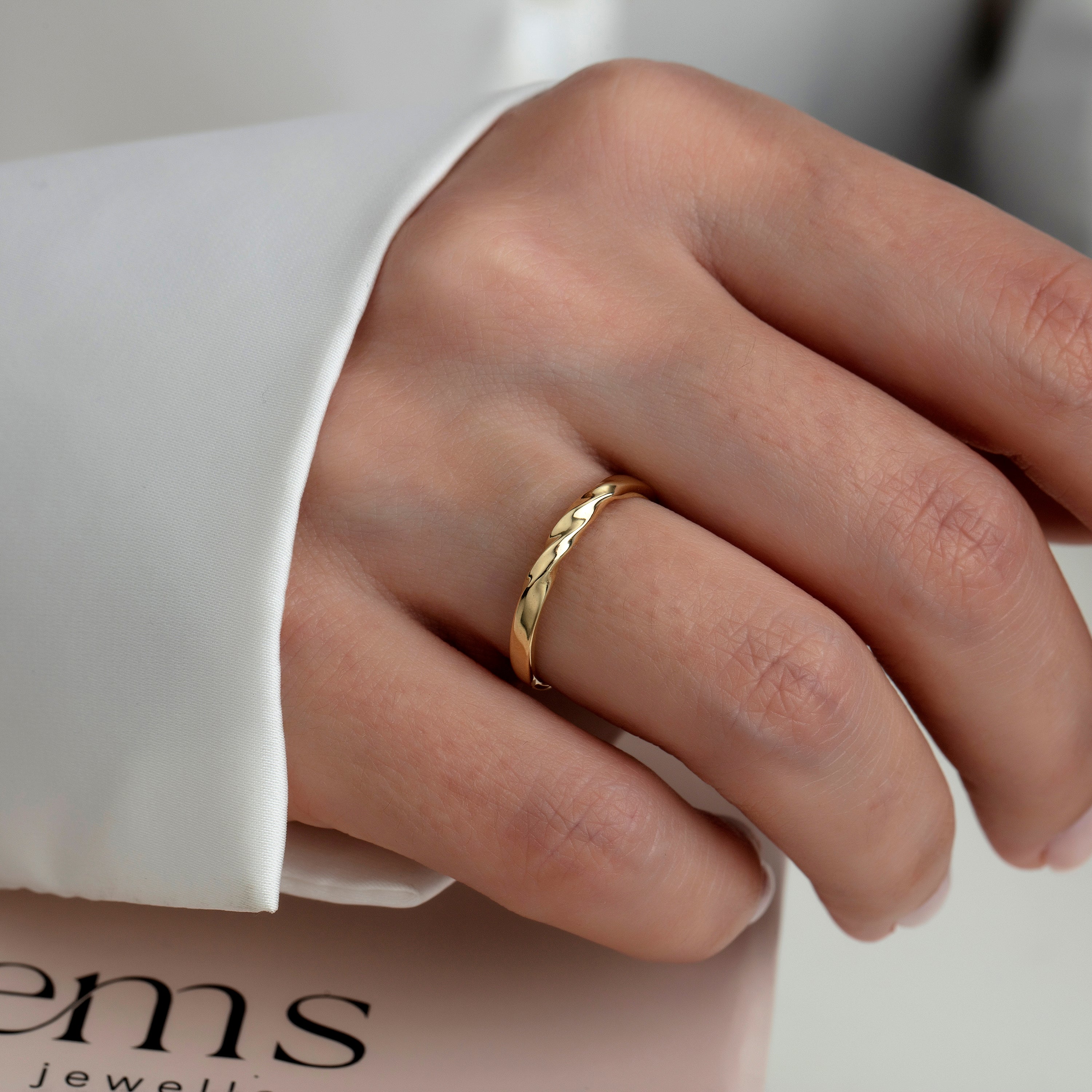 Add refined texture to your stack with this 14K gold twist dainty ring. Designed with gentle sculptural twists and a polished finish, this slim ring adds movement and shine to any look, perfect on its own or layered with your favorites.