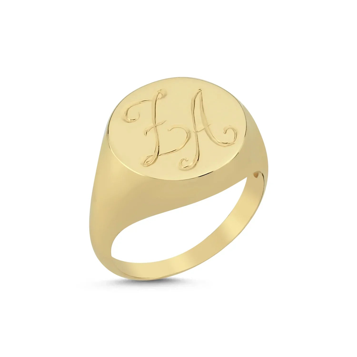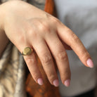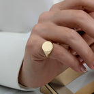 Make a statement with quiet confidence through this 14K gold minimalist round signet ring. Its clean lines and timeless silhouette offer effortless sophistication for any occasion.