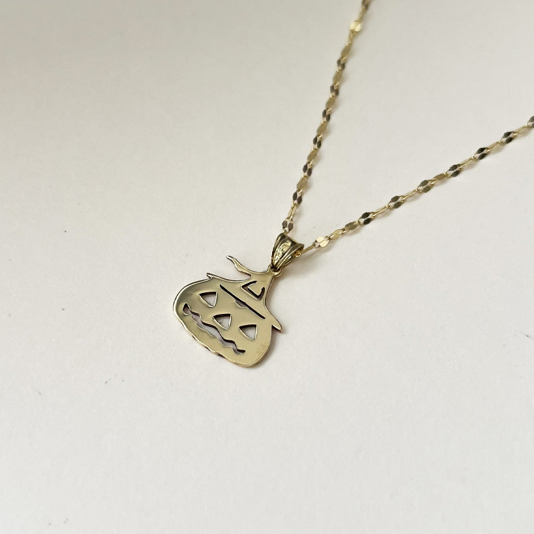 Jack-O’-Lantern Pumpkin Pendant Gold Necklace