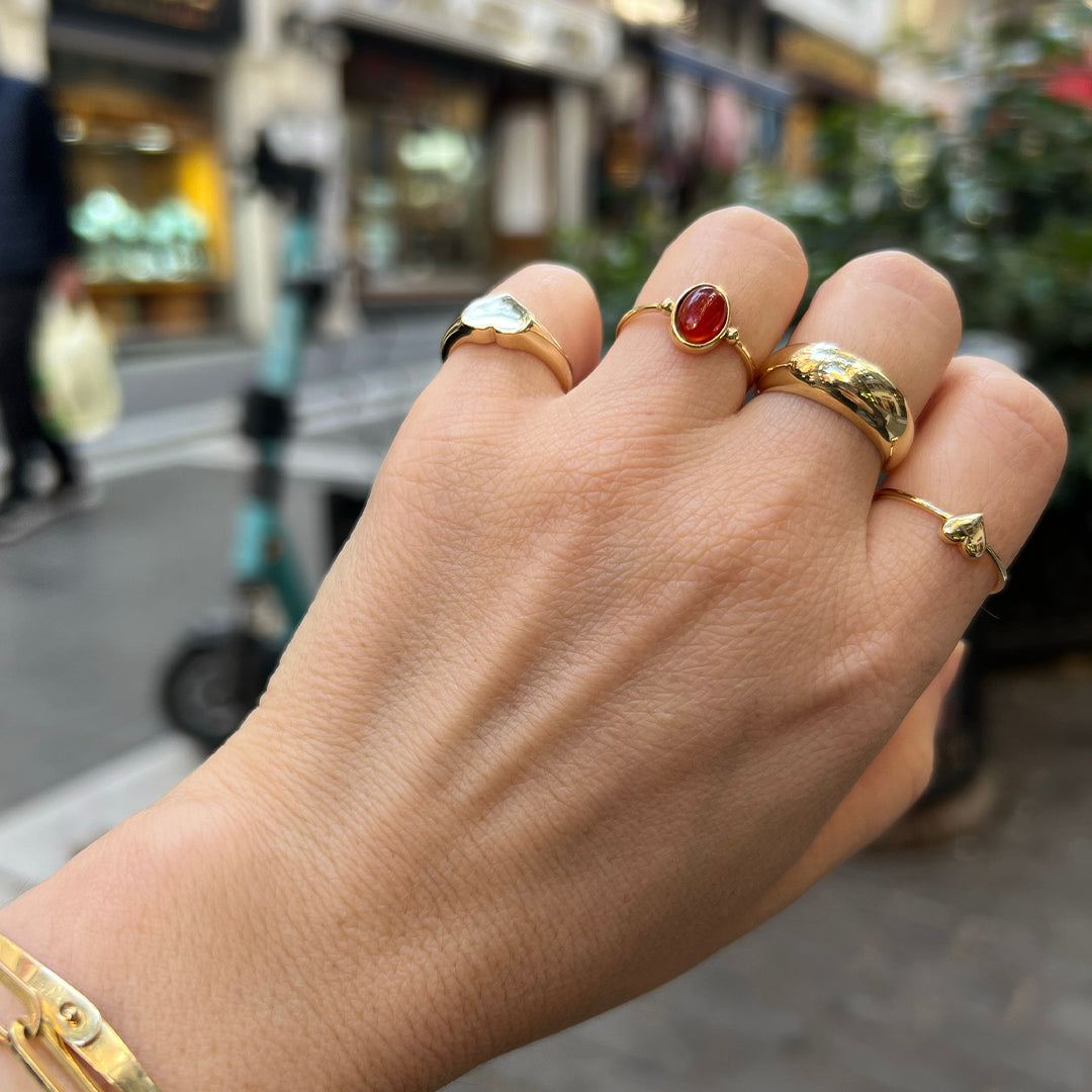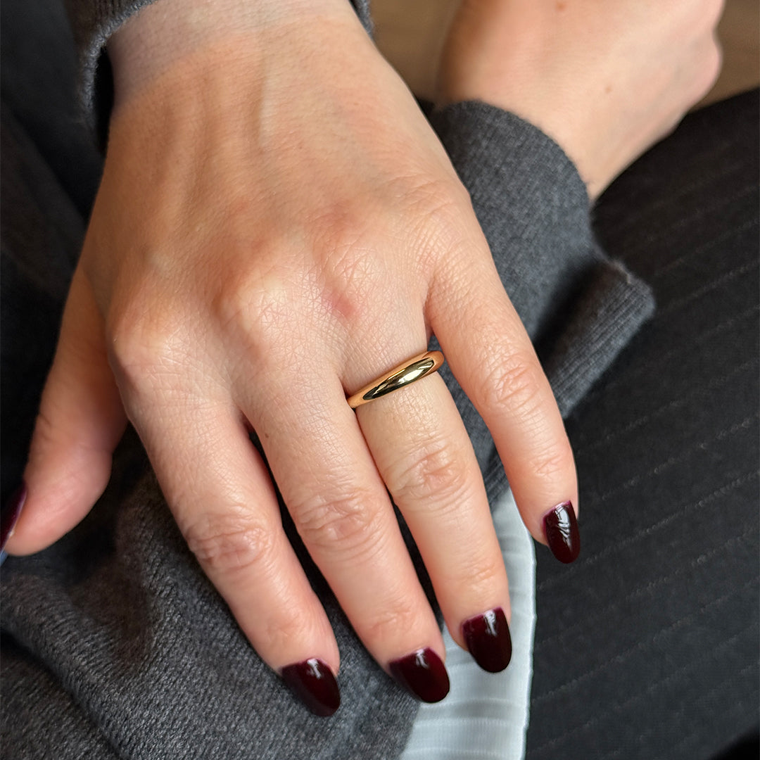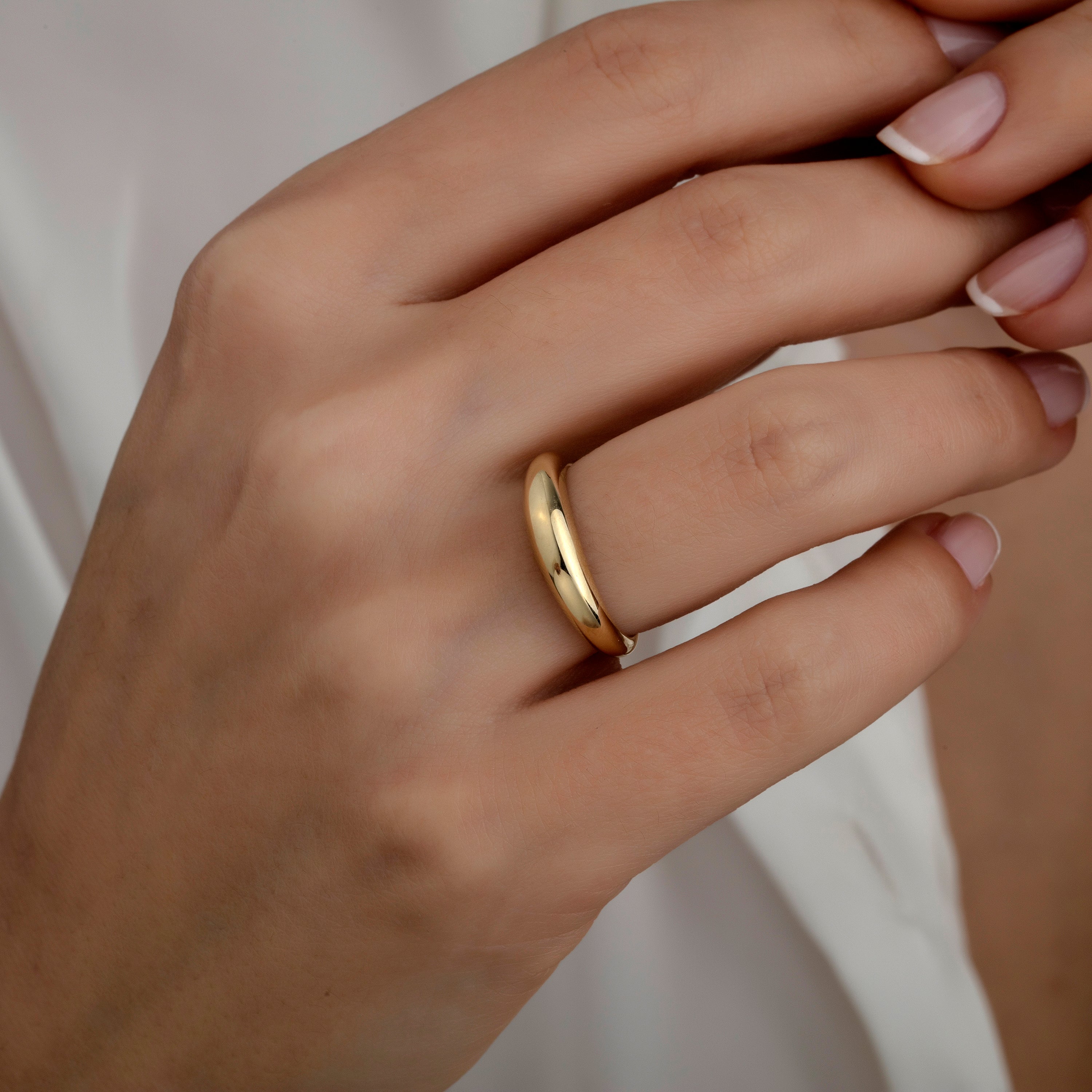 Make a smooth statement with this 14K gold thin bomber ring. Featuring a softly domed profile and mirror-polished surface, this elegant essential adds subtle volume and effortless style to your everyday jewelry rotation.