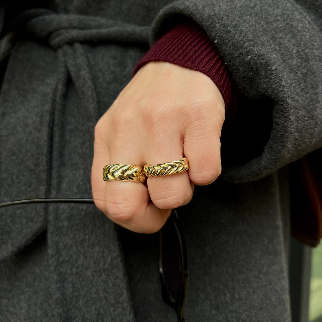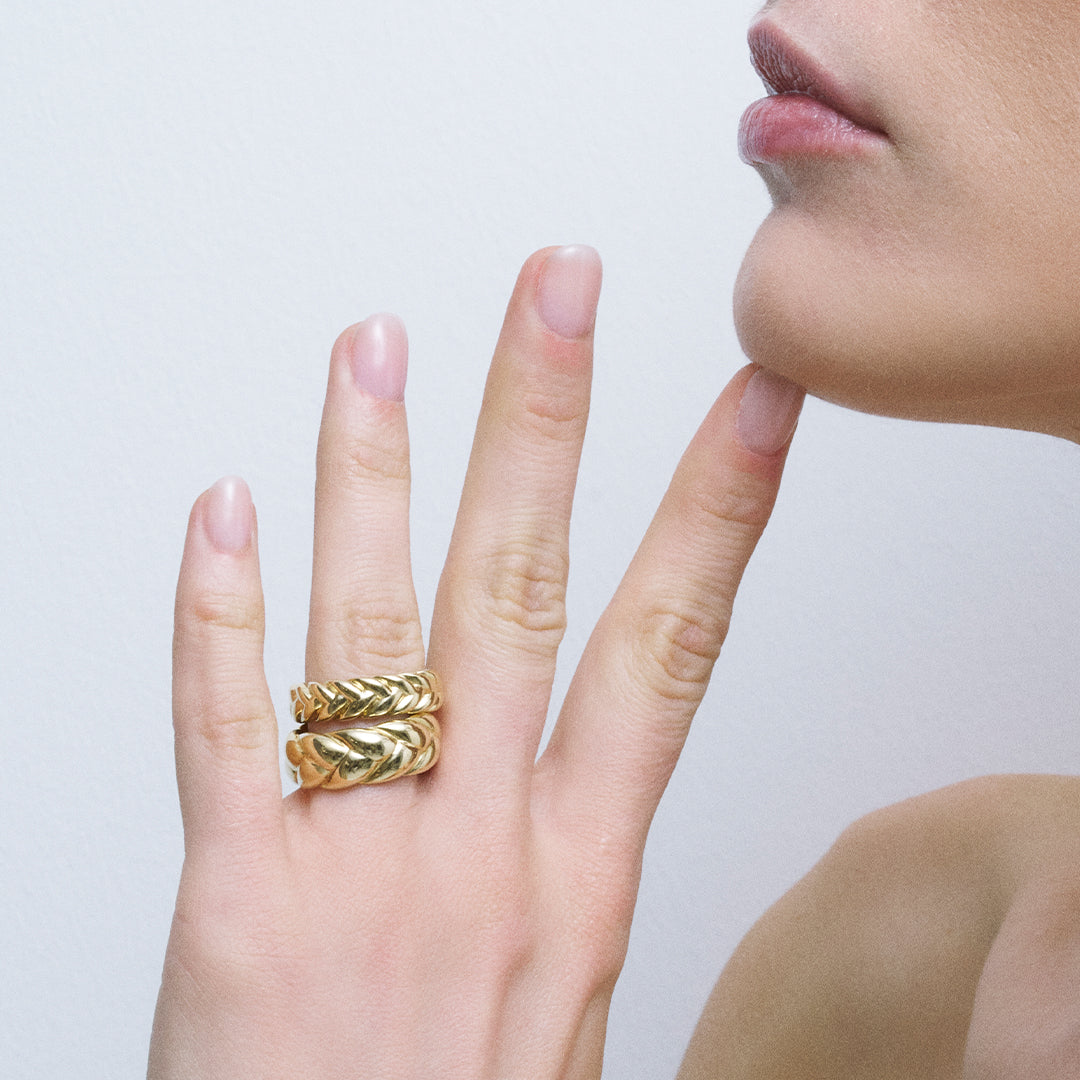 Make a confident style statement with this 14K gold braided ring. Featuring a sculptural woven design with a smooth inner band, this piece blends craftsmanship and comfort for a striking finish that stands out in any collection.