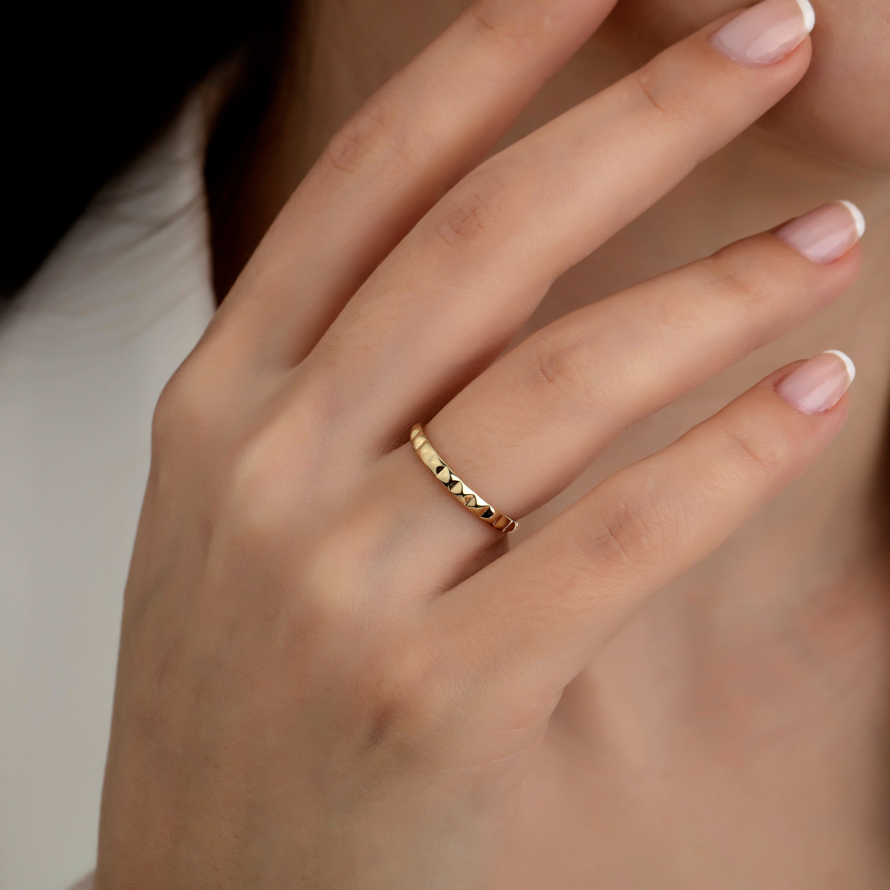 A sleek, creative silhouette that brings texture and intrigue to your stackable ring collection, perfect for expressing your style with subtle sophistication.