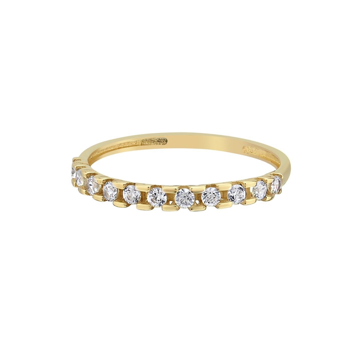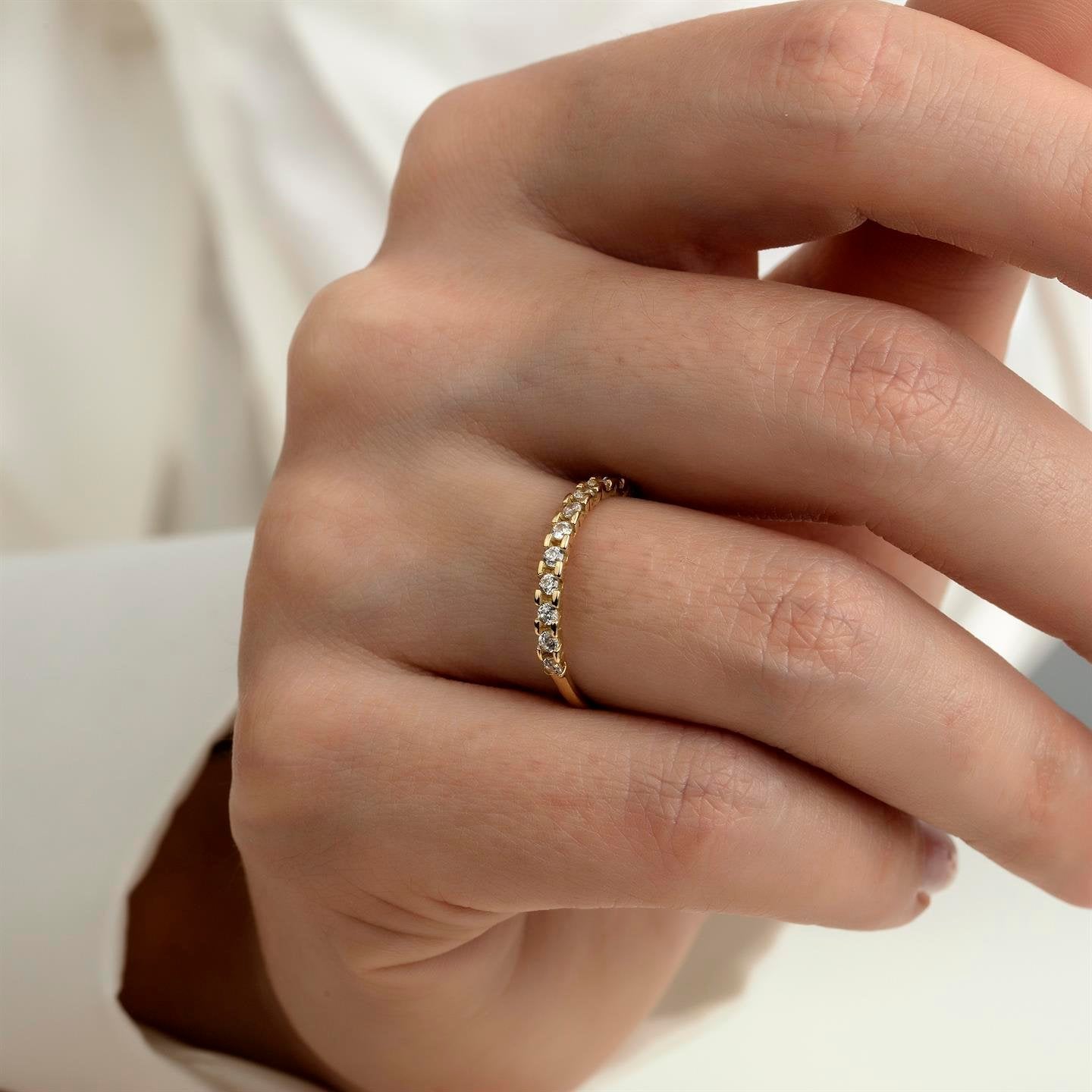 Add a subtle sparkle to your everyday style with this 14K gold half round ring. Its row of shimmering stones is set along a sleek, polished band, creating a balanced and elegant look perfect for stacking or wearing solo.