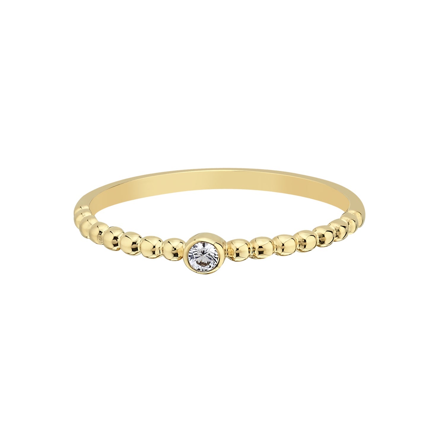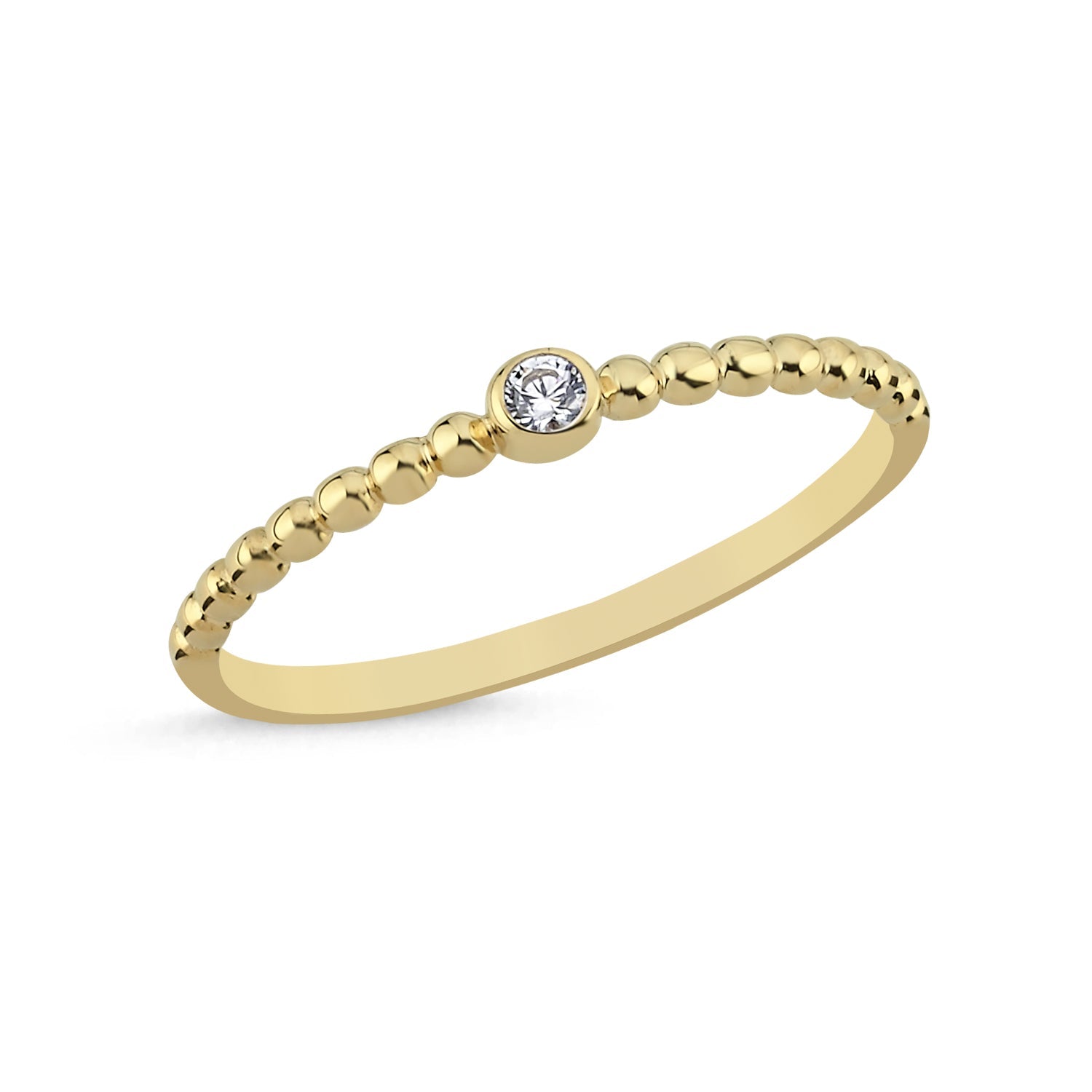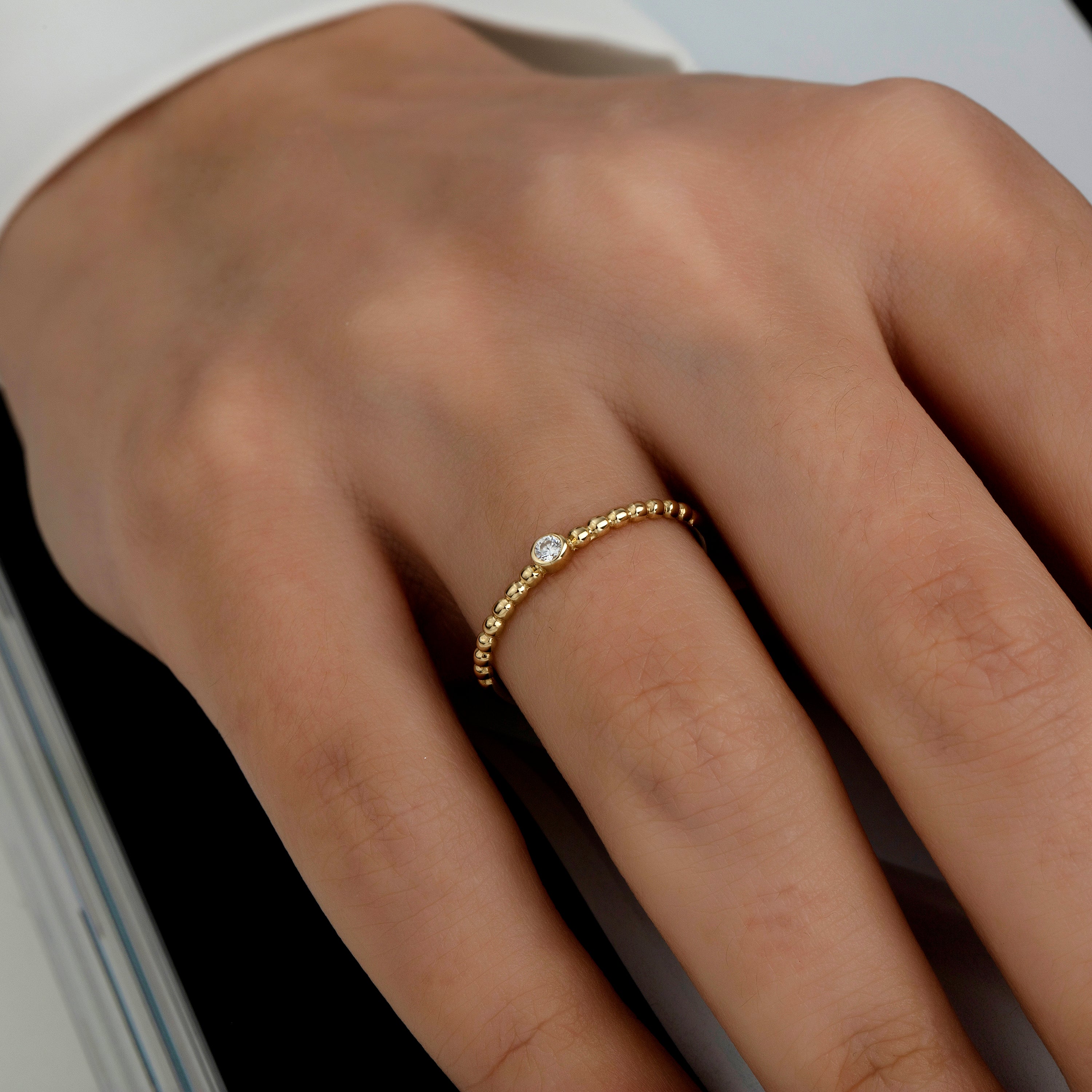 14K Gold Beaded Solitaire Stackable Dainty Ring