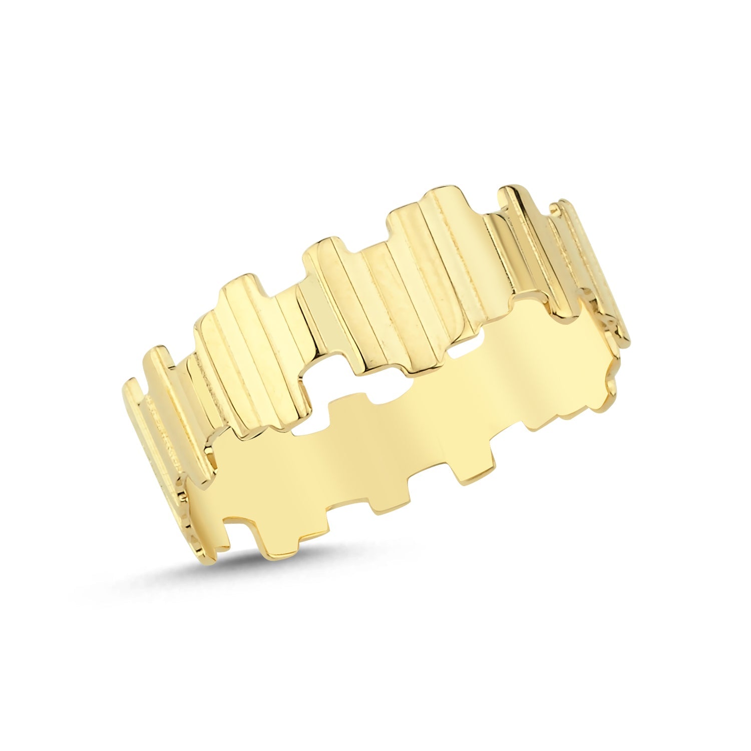 Make your mark with this bold 14K gold Zigzag Love band ring. Featuring a wide, sculpted design that echoes strength and emotion, it’s a powerful piece that speaks without saying a word.