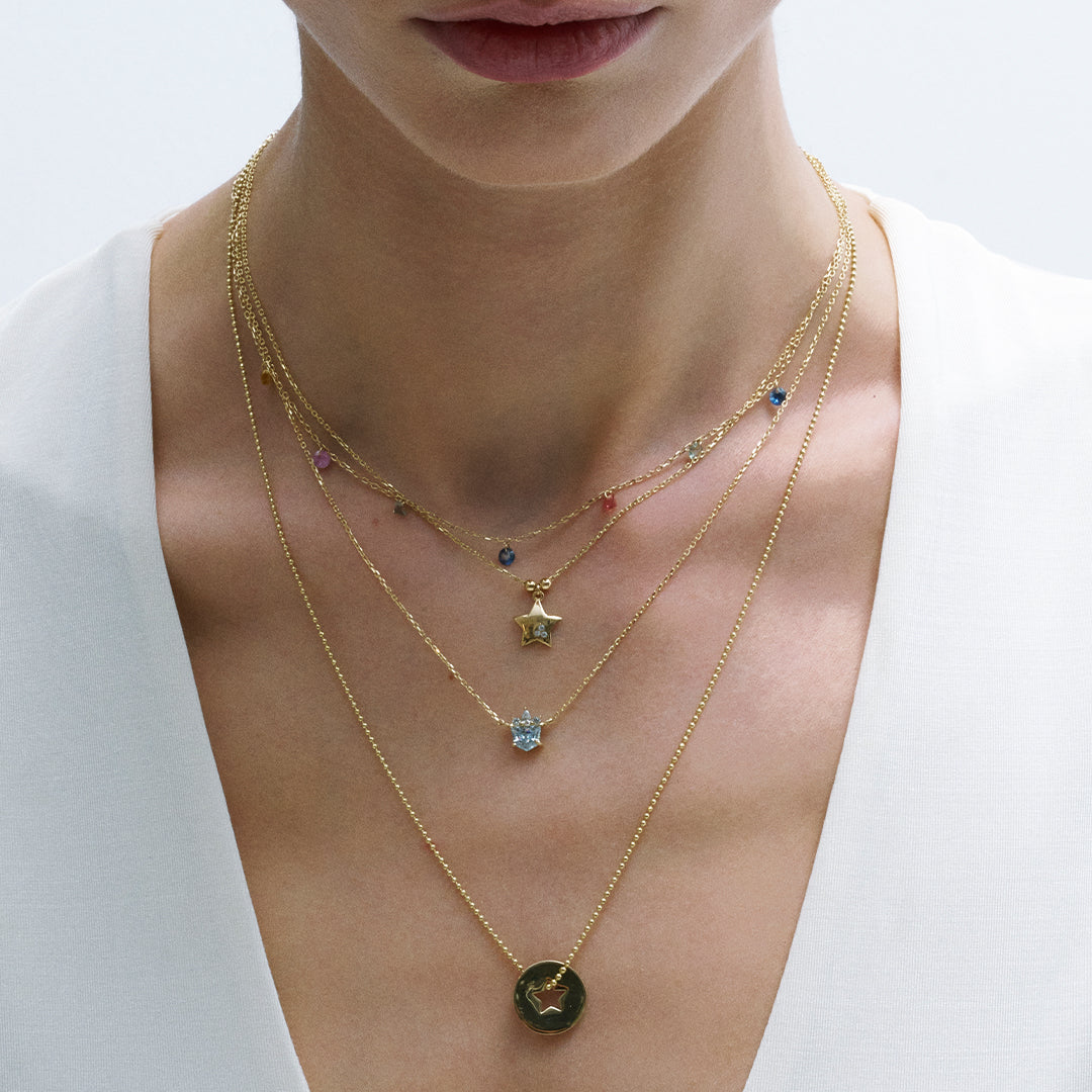 • Design: A delicate gold chain adorned with vibrant sapphire charms