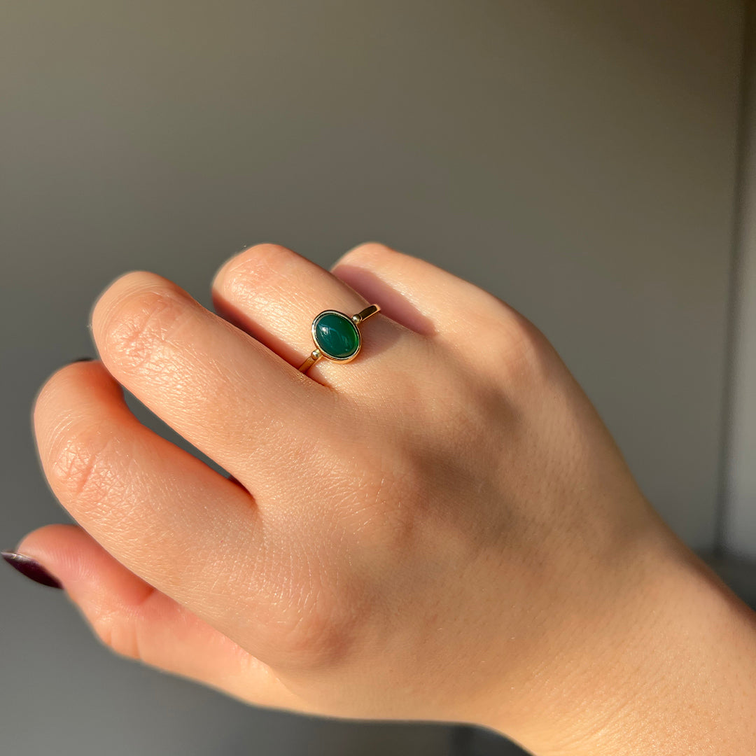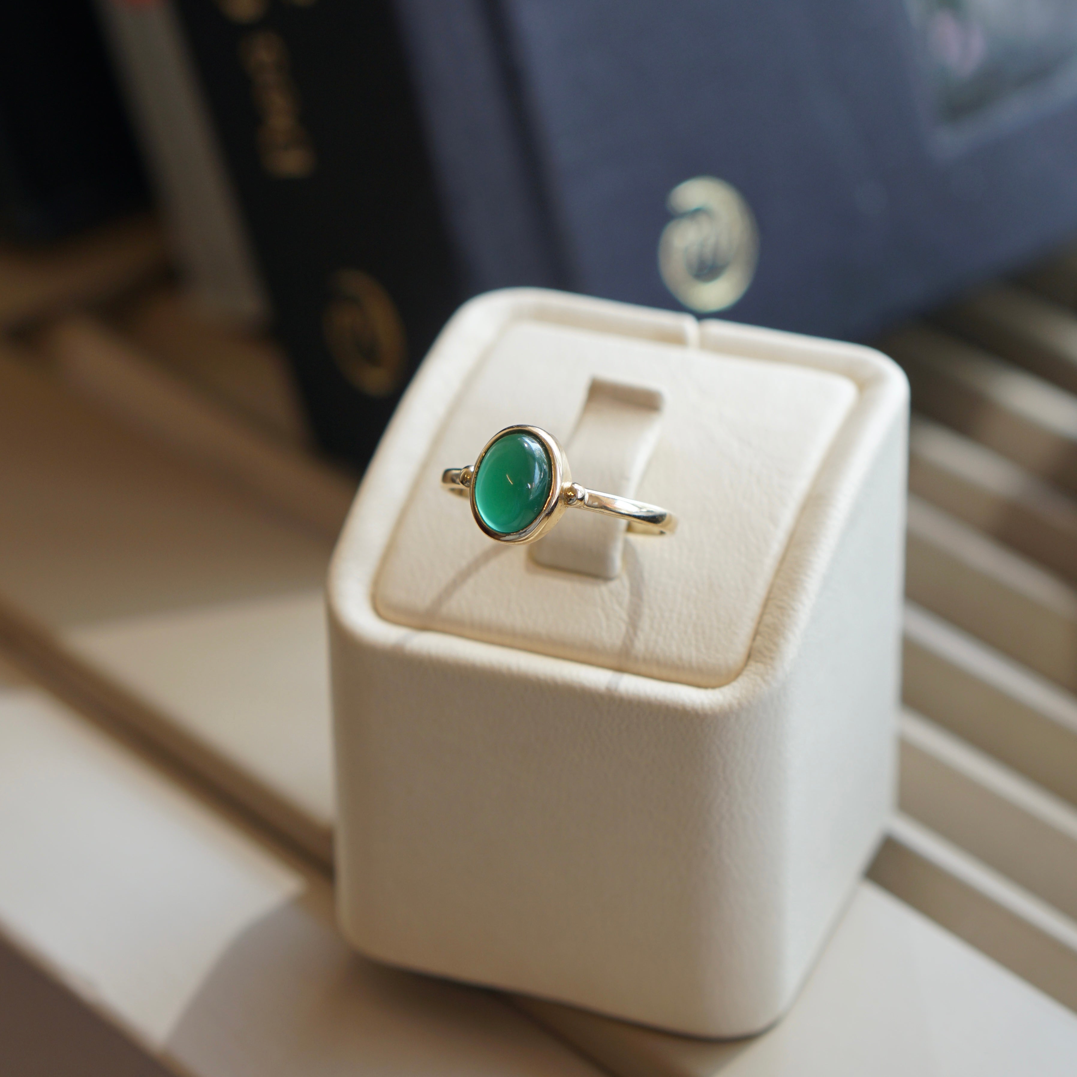 With its rich green hue and grounding presence, this ring blends nature’s beauty with classic design, a subtle yet striking piece for everyday wear.