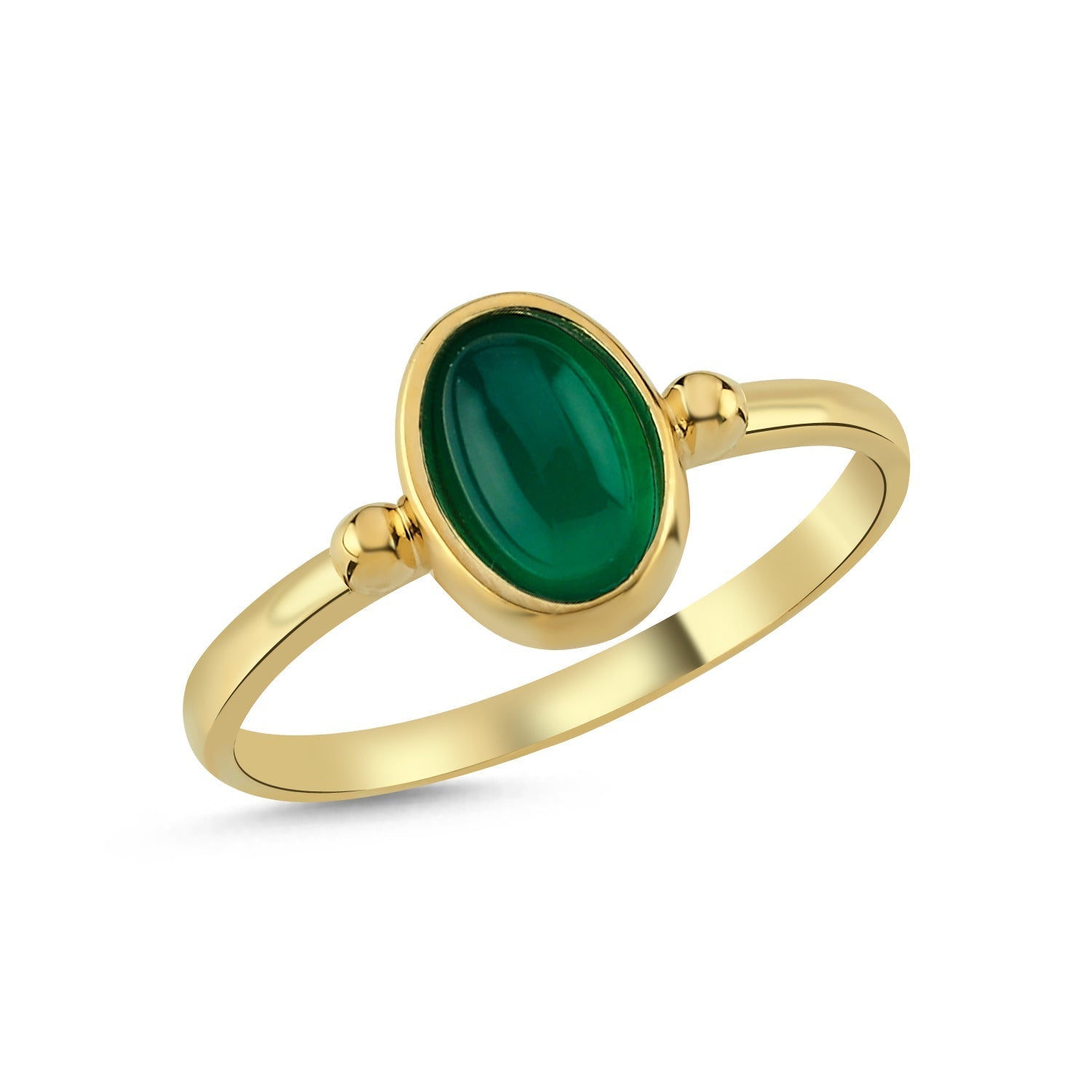 Channel vintage elegance with this 14K gold green agate ring. Featuring a smooth oval-cut green agate cabochon framed in a minimalist bezel setting, this natural stone ring pairs warmth and color in a timeless silhouette.