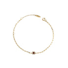 Simplicity meets sophistication in this 14K Gold Ruby & Diamond Bracelet. A brilliant ruby and sparkling diamond rest at the center of a dainty paperclip chain, creating a look that is both bold and elegant.