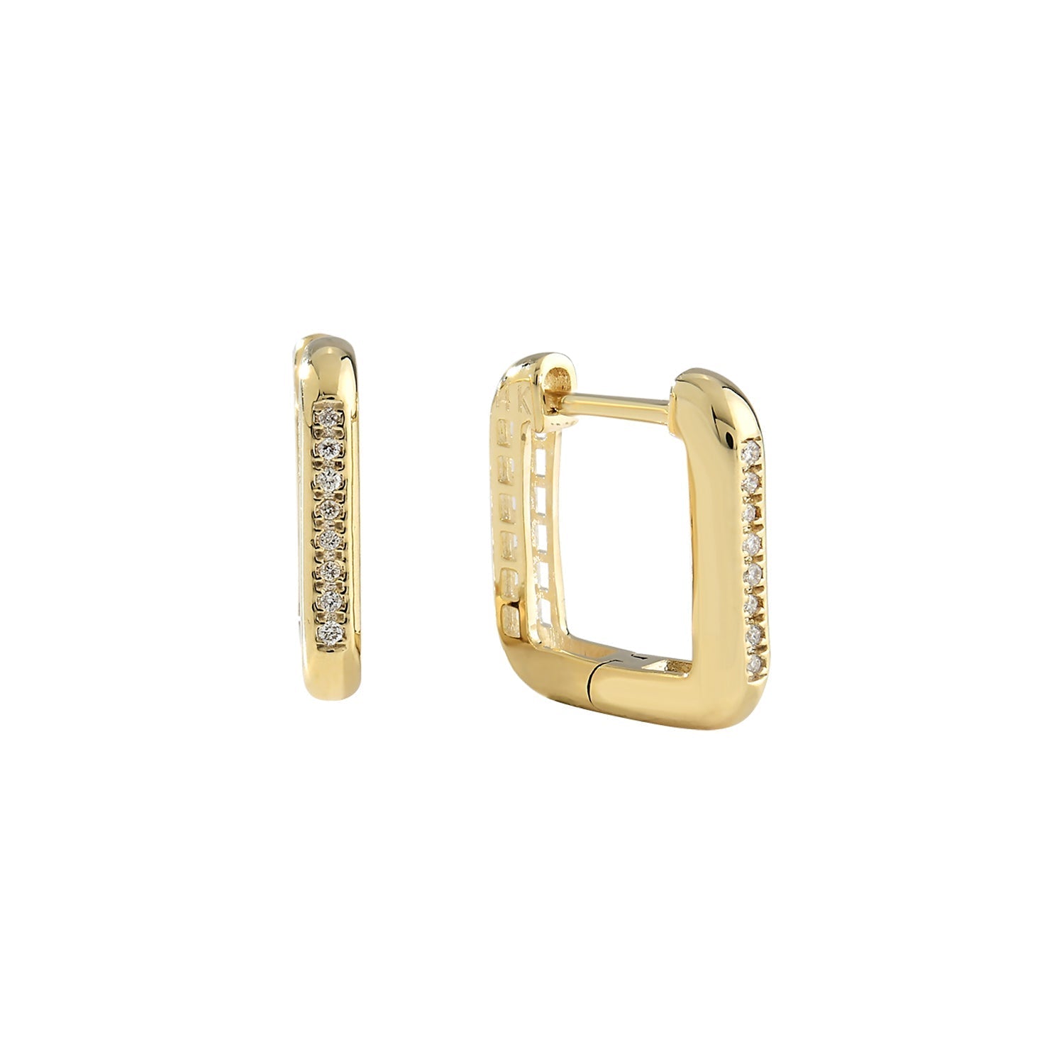 14K Gold Pavé Diamond Rectangular Hoop Earrings