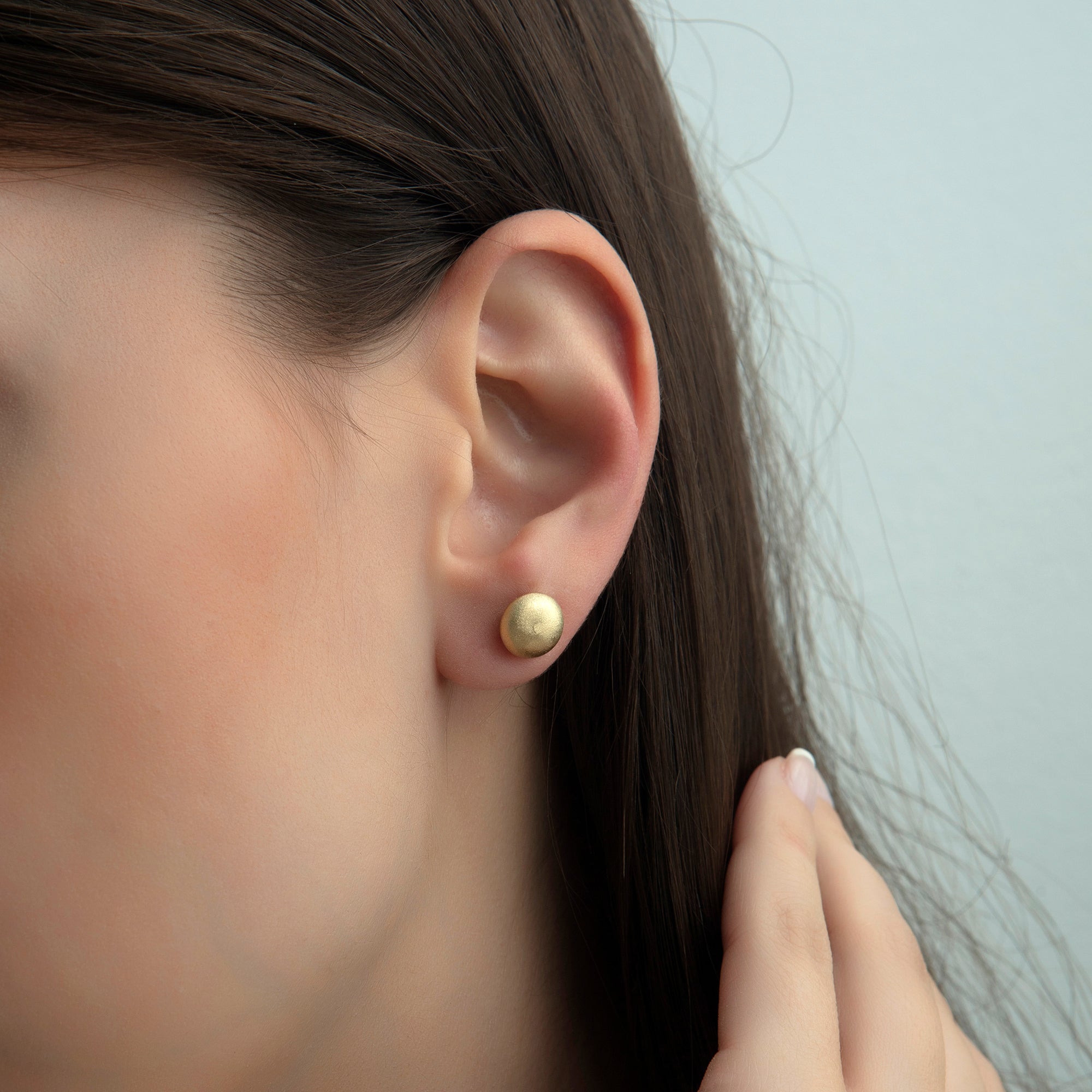 - Round stud earrings with a matte finish for a soft, modern look