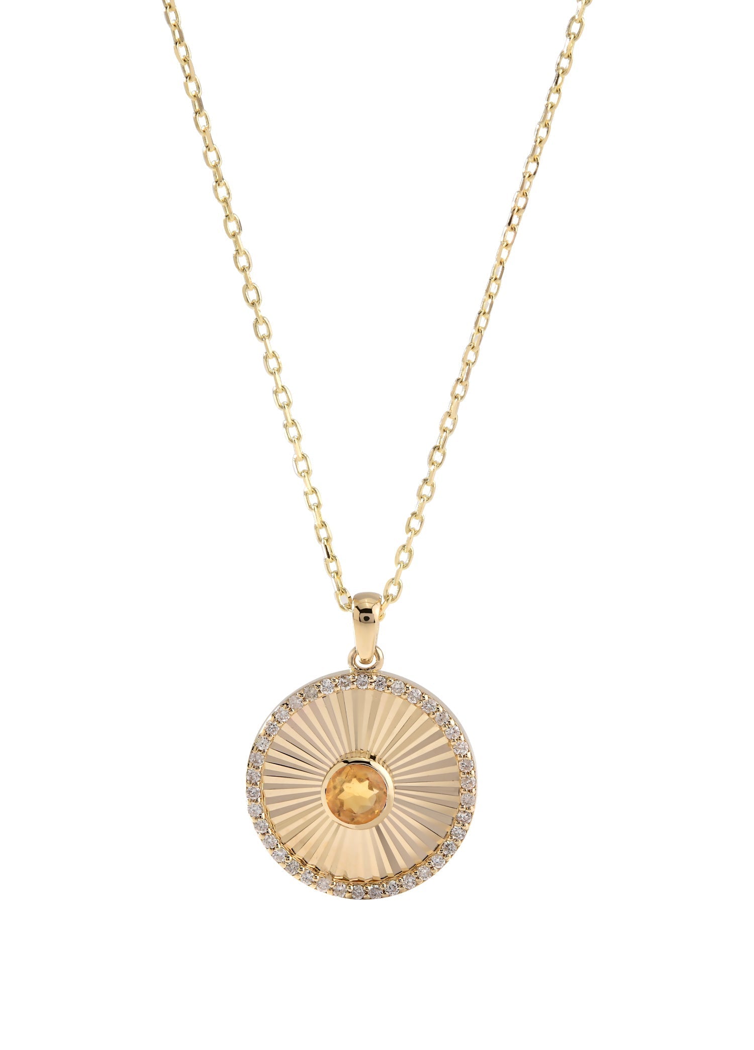 14K Gold Citrine Stone Diamond Medallion Necklace