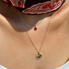 14K Gold Diffusion Glass Ruby Stone Diamond Medallion Necklace