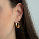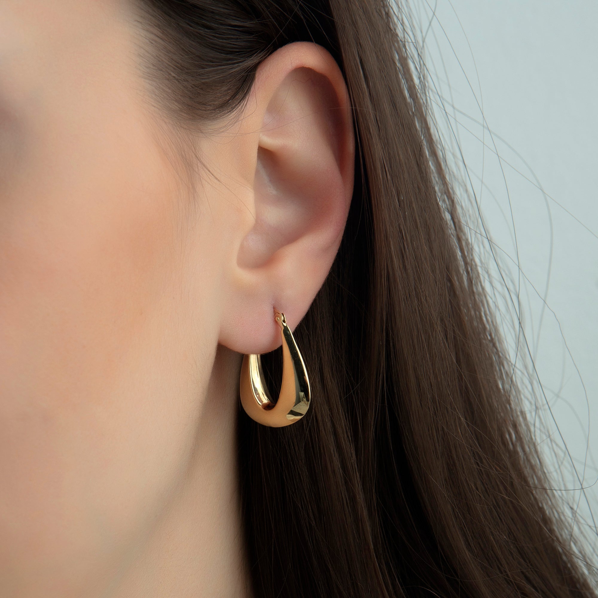 Enhance your style with these 14K Gold Tapered Geometric Hoop Earrings. Their sleek, tapered design creates a fluid and modern silhouette, perfect for adding a contemporary touch to any look.