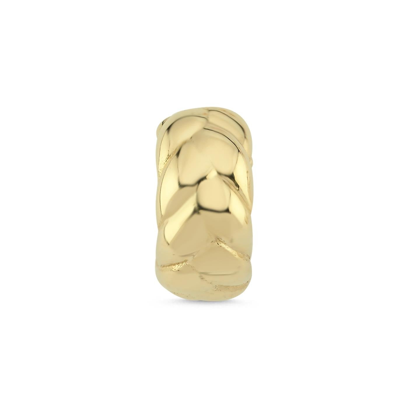 Soft and textured, this 14K Gold Knitted Croissant Ear Cuff brings a modern edge to your style. The intricate knitted design creates a layered croissant effect, adding depth and shine to any look. Its sleek gold finish enhances the rich texture, making it a standout piece.