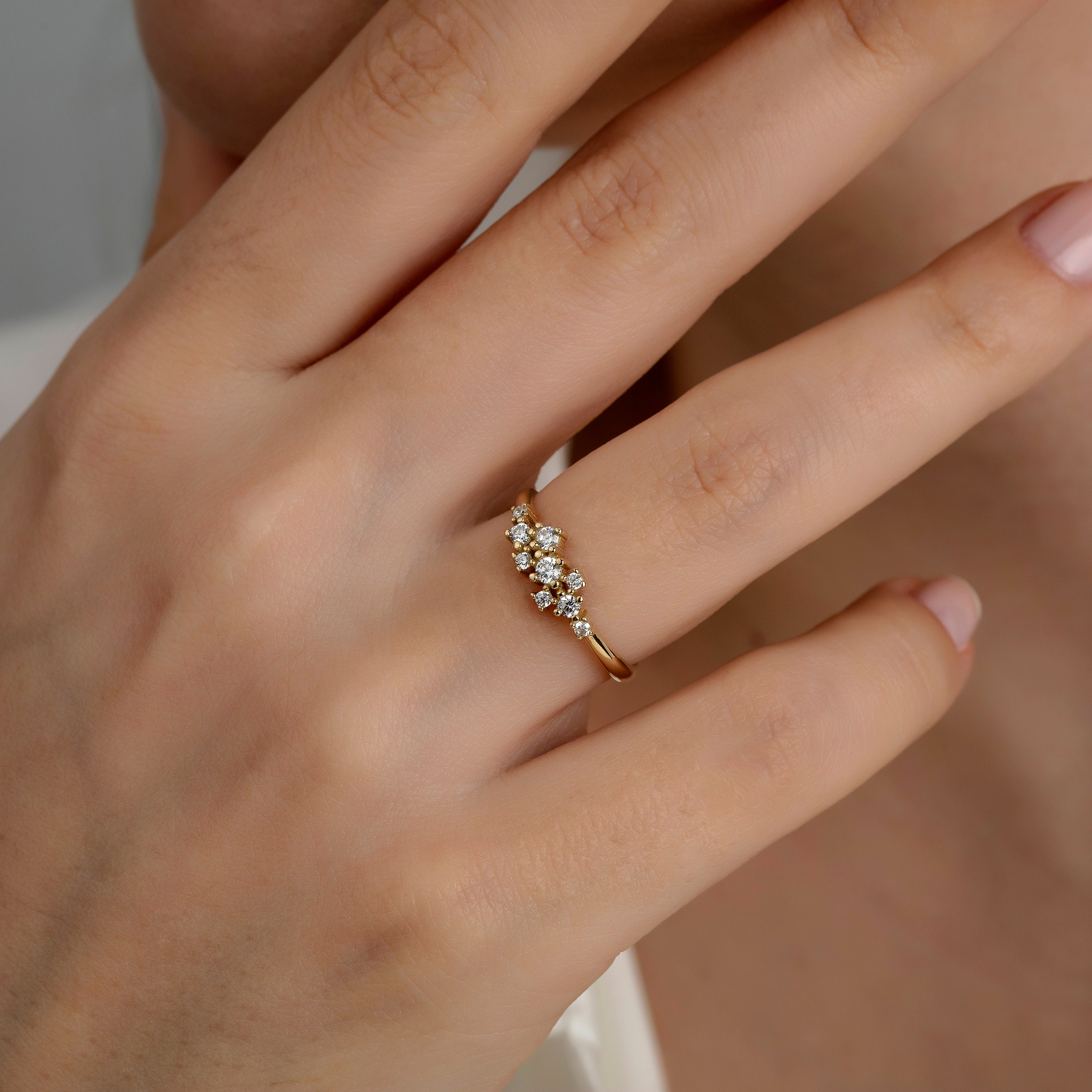 14K Gold Cluster Stone Stackable Dainty Ring
