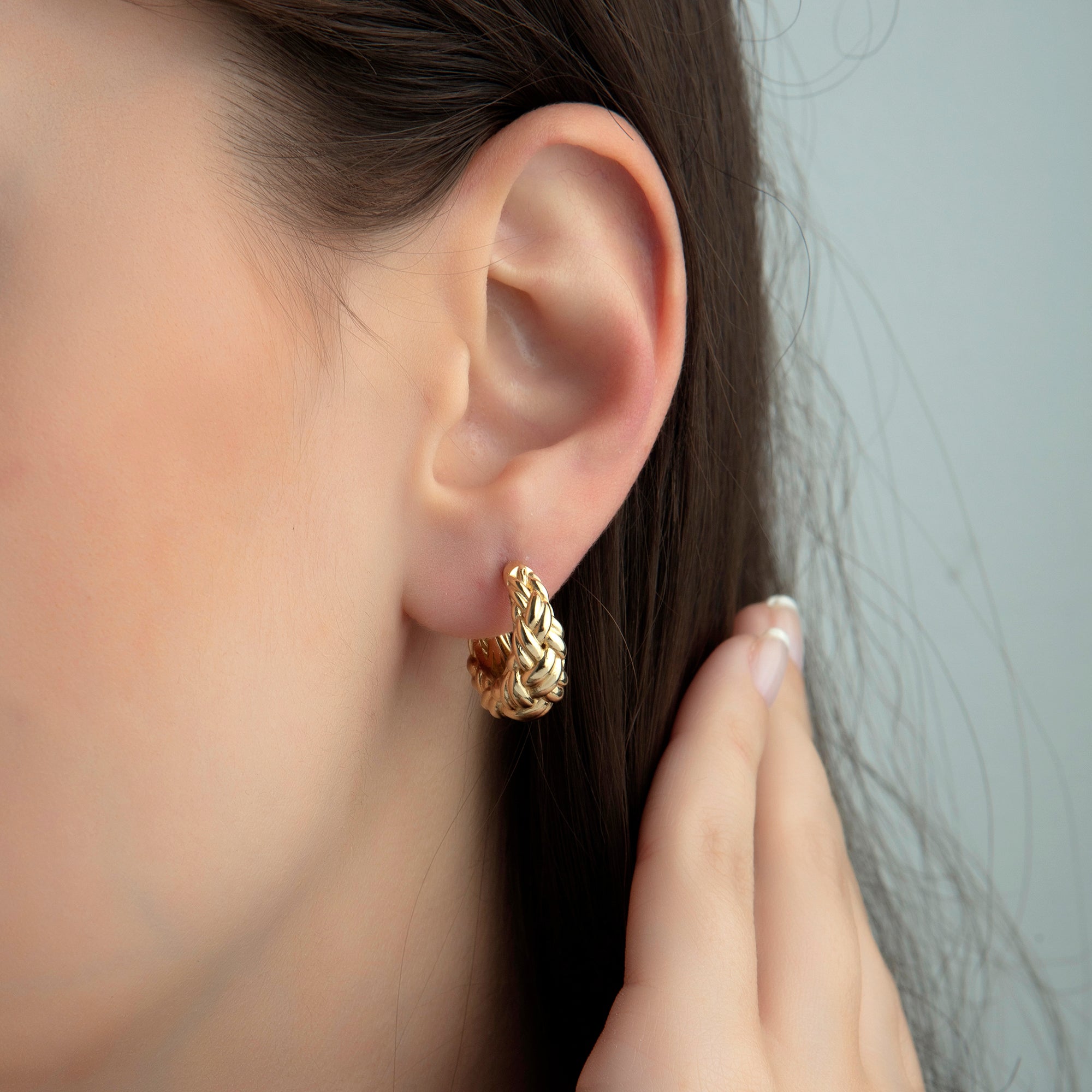 Bring timeless charm to your style with these 14K Gold Ophidia Braided Hoop Earrings. The intricate braided design reflects timeless craftsmanship, creating a refined yet eye-catching look. Perfect for day-to-night wear.