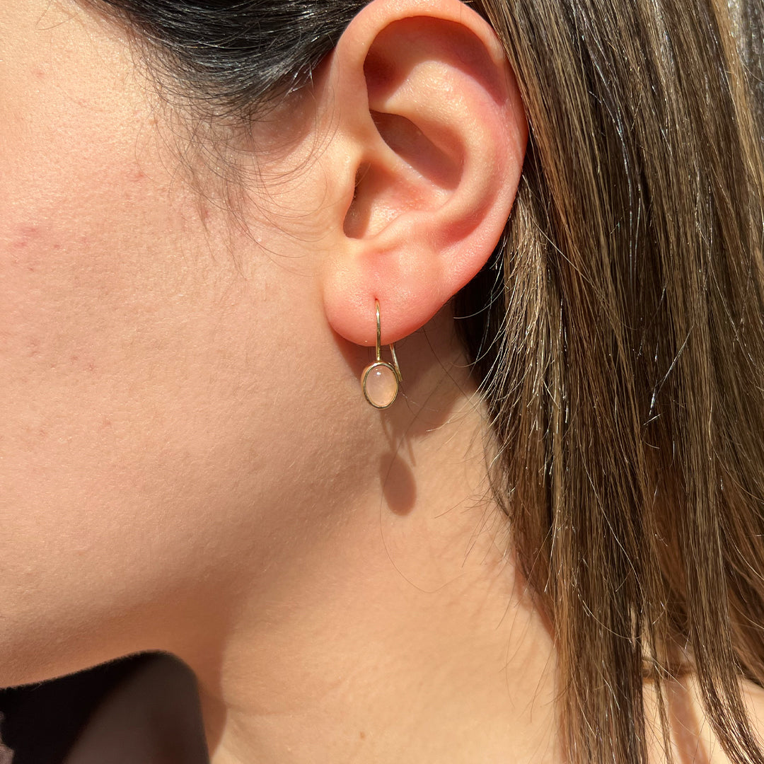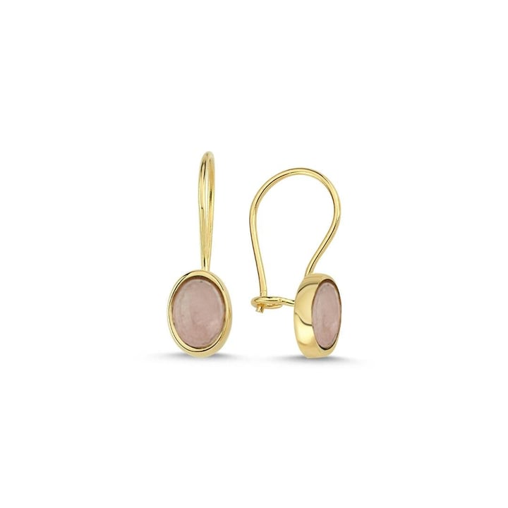 14K Gold Oval Rose Quartz Drop Earrings