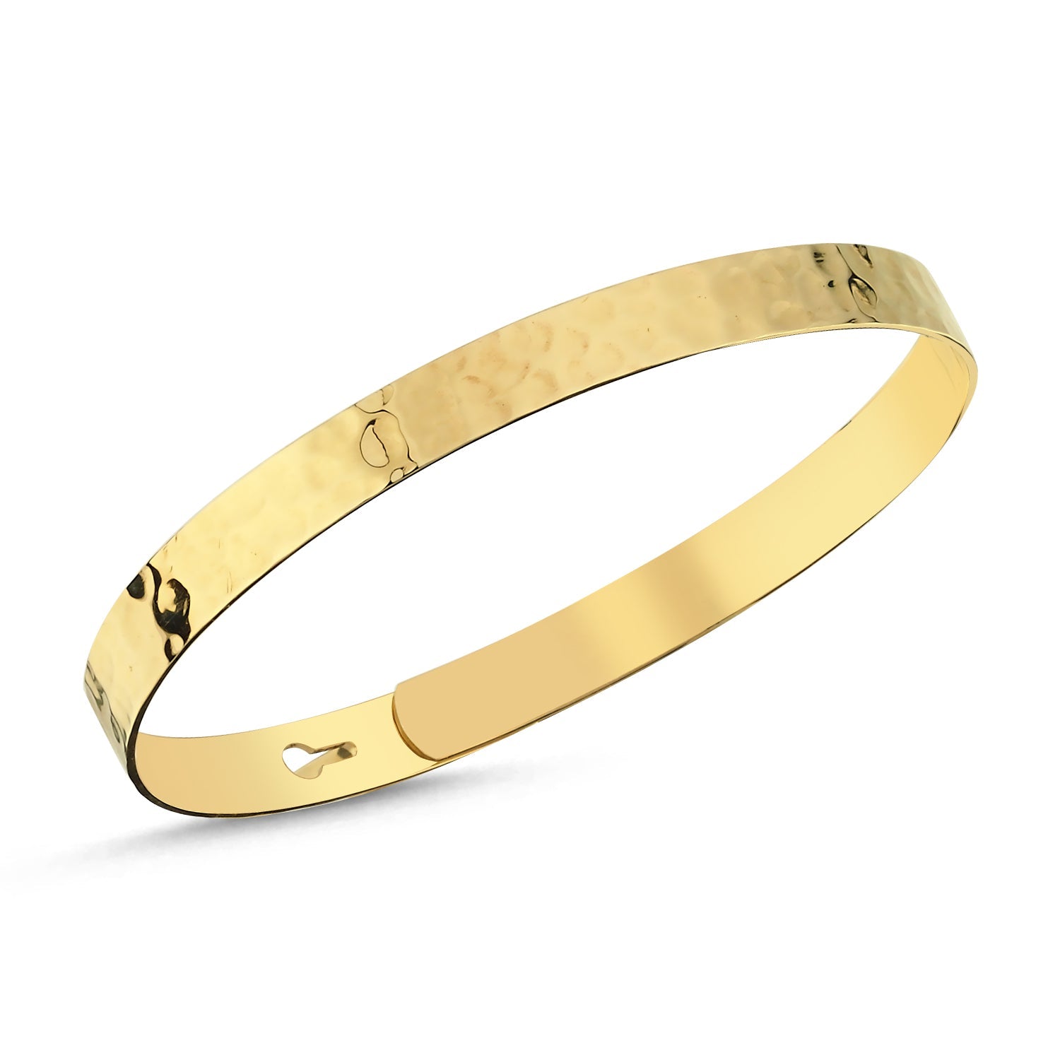 Make a bold statement with this 14K Gold Forged Handcuff Bracelet, crafted from genuine gold with a hammered finish for a modern yet timeless look. Its sleek design and textured detailing add depth and shine, making it the perfect accessory for both casual and formal occasions.
