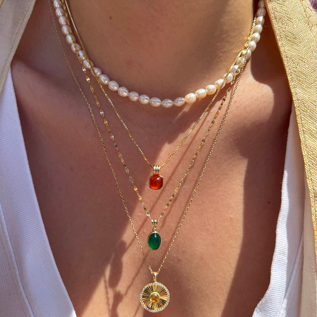 14K Gold Timeless Carnelian Natural Stone Necklace