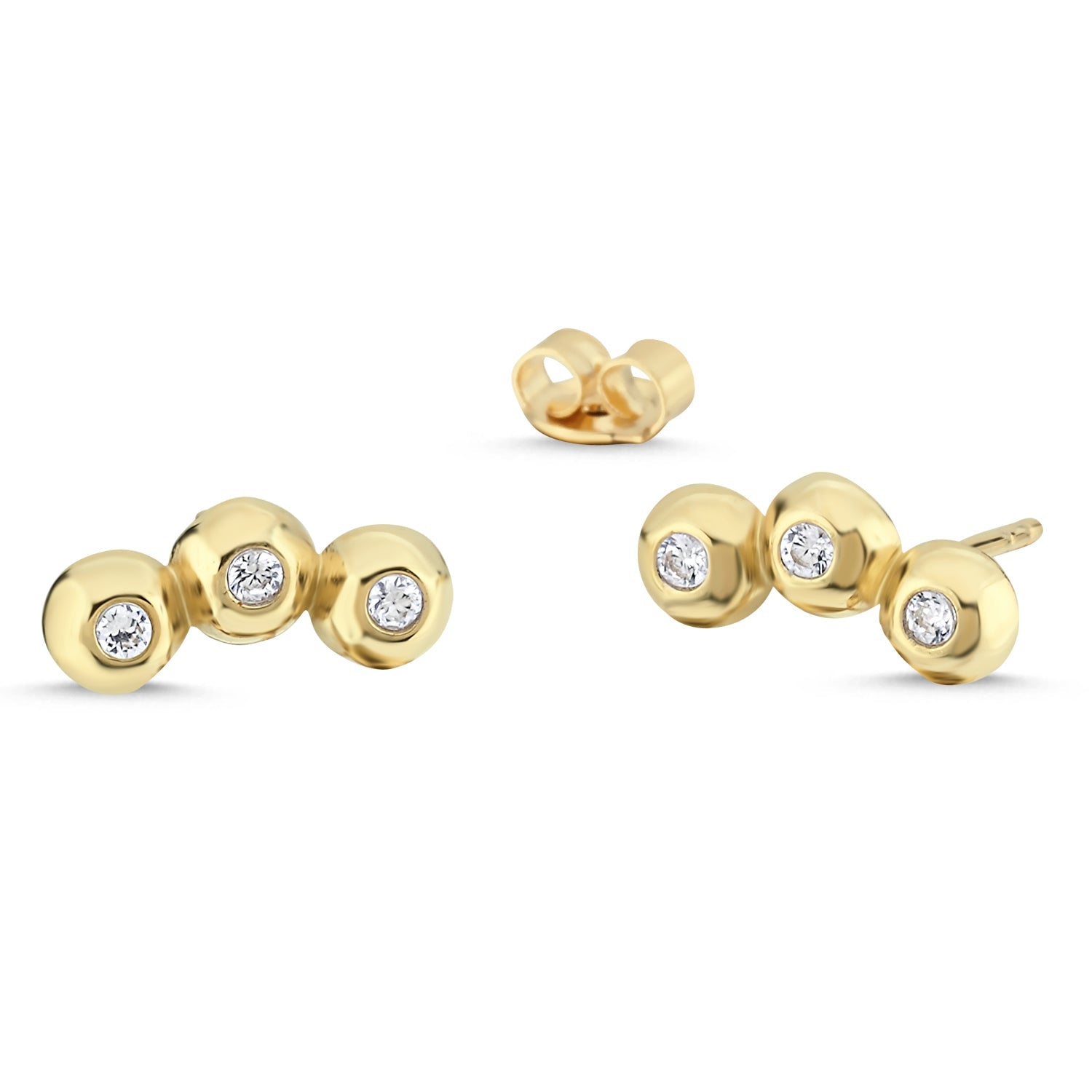 Soft and modern, these 14K Gold Trio Bezel Stone Stud Earrings bring a touch of effortless charm to any look. The three smooth, bezel-set stones create a balanced and polished design, enhanced by the warm glow of 14K gold.