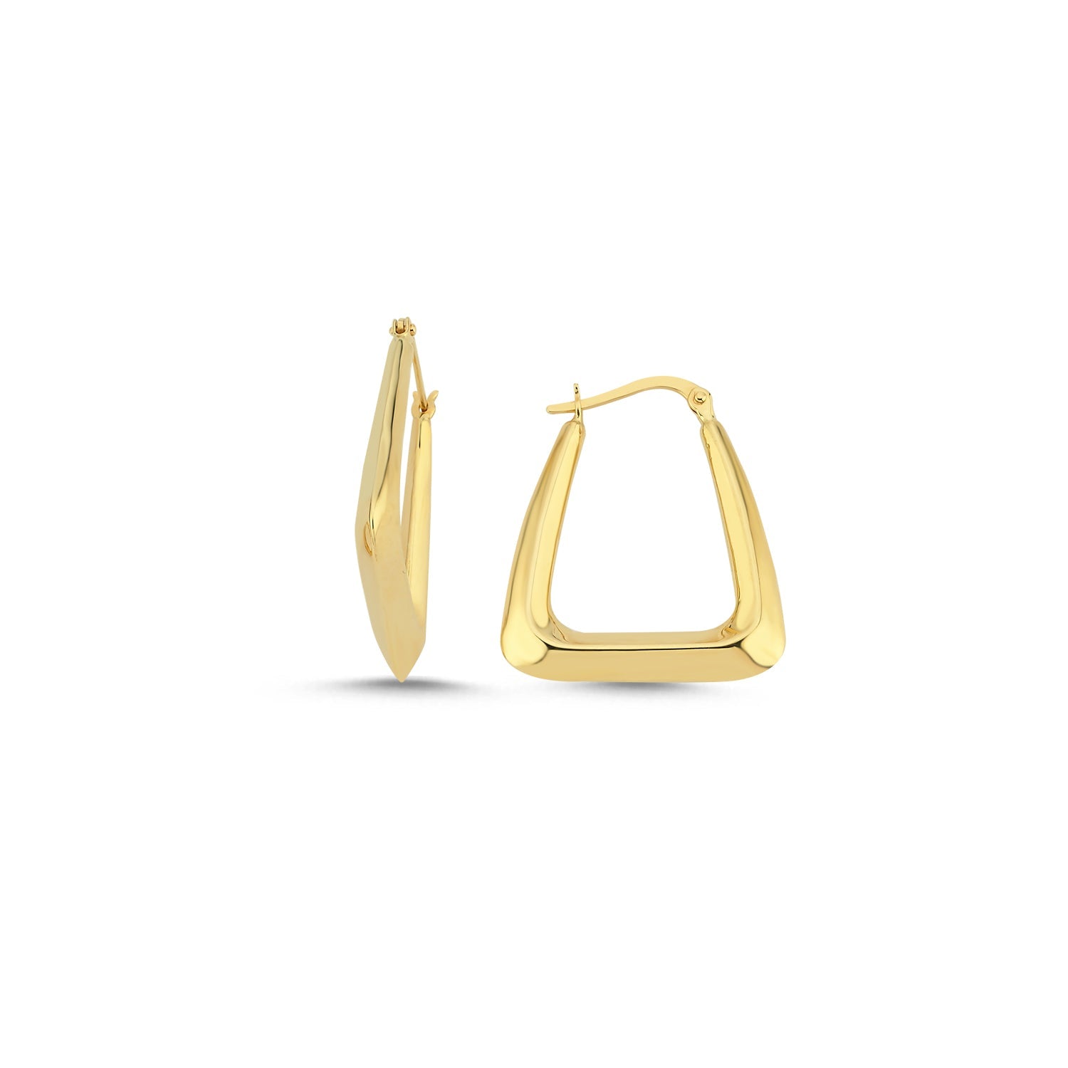 Add a sleek, modern edge to your look with these 14K Gold Triangle Hoop Earrings. Featuring a unique triangular silhouette, these hoops offer a refined yet contemporary feel. The polished gold finish enhances the geometric design, creating a striking balance of elegance and modern style.