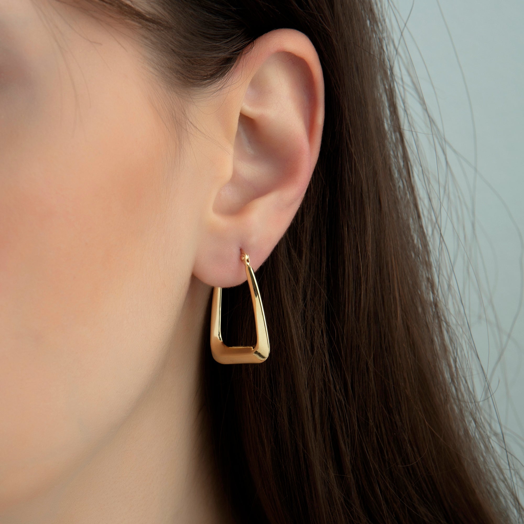 These triangle hoops bring a bold yet refined accent to both casual and formal looks.