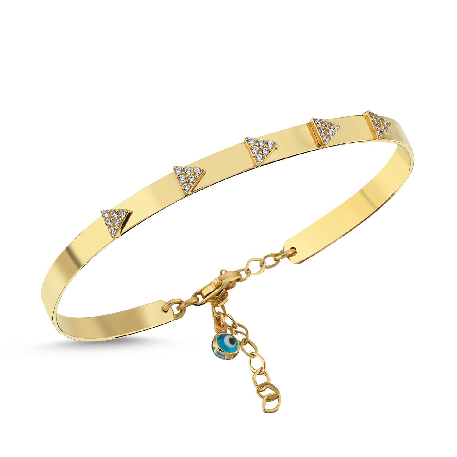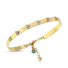 14K Gold Triangle Stone Cuff Bracelet with Evil Eye Charm