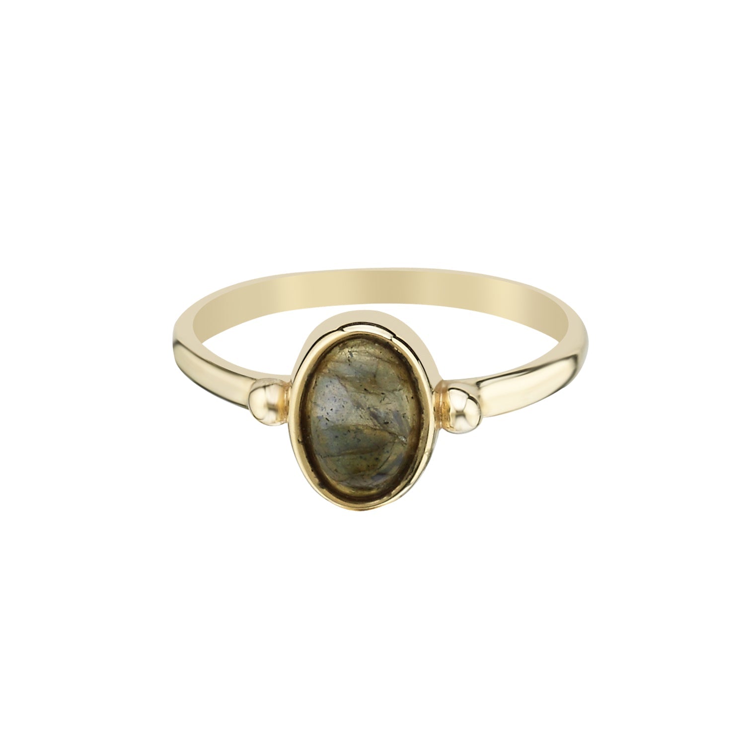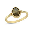 Let your style reflect the magic of nature with this 14K gold ring, featuring a mystical oval-cut labradorite. With its captivating iridescence and vintage-inspired setting, this piece adds soul and story to any ring stack or solo wear.