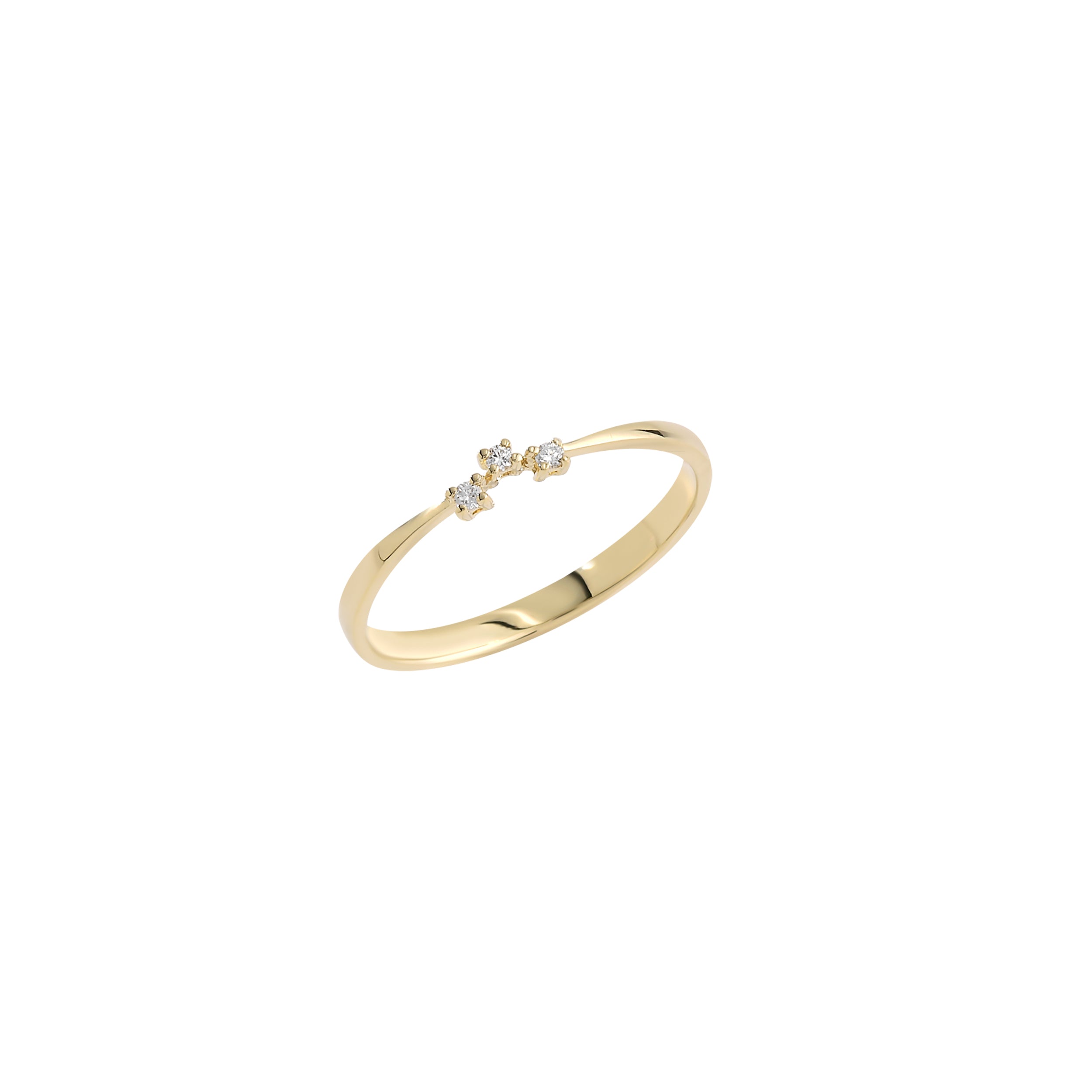 Delicate yet dazzling, this 14K yellow gold diamond ring is a whisper of elegance on your finger. The trio of sparkling diamonds creates a minimal yet radiant design, perfect for adding a touch of brilliance to every moment.