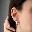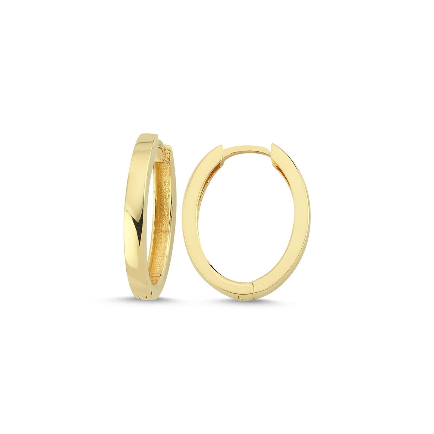 Add a modern touch to your style with these 14K gold ellipse hoop earrings. Their sleek ellipse shape and polished gold finish create a sophisticated yet understated charm.