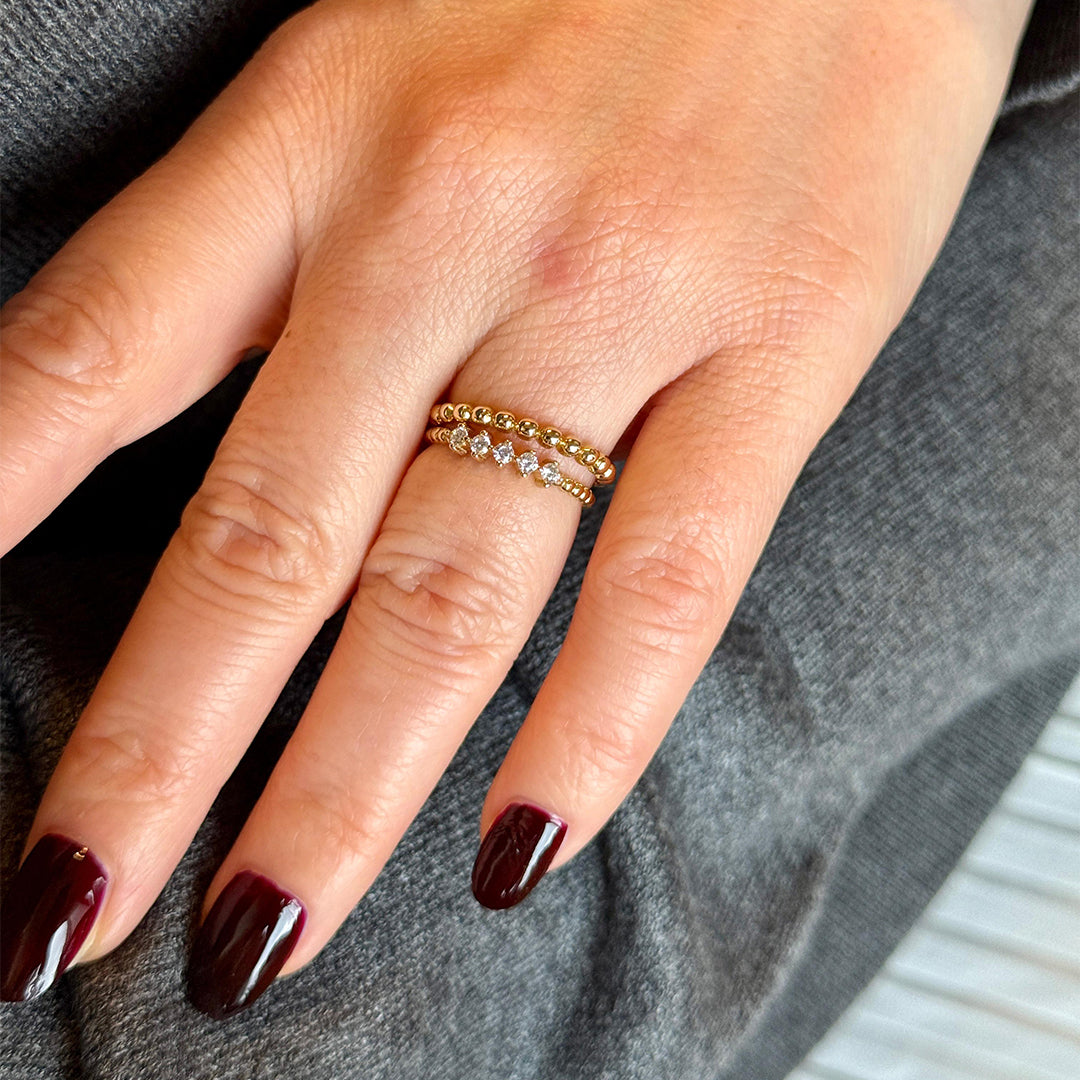 Add a subtle touch of elegance with this 14K gold petite stackable ring, featuring a delicate row of round stones on a refined beaded band. Its minimalist design makes it perfect for stacking or wearing solo for a chic everyday look.