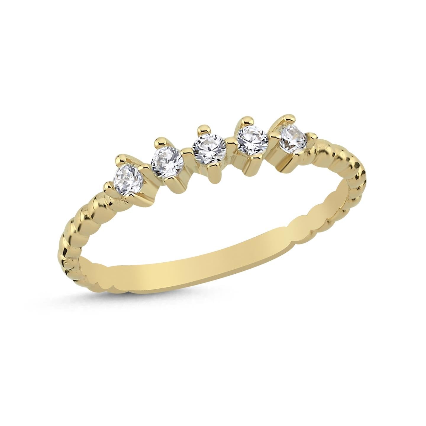 - Row of round stones set on a petite beaded band for a delicate sparkle