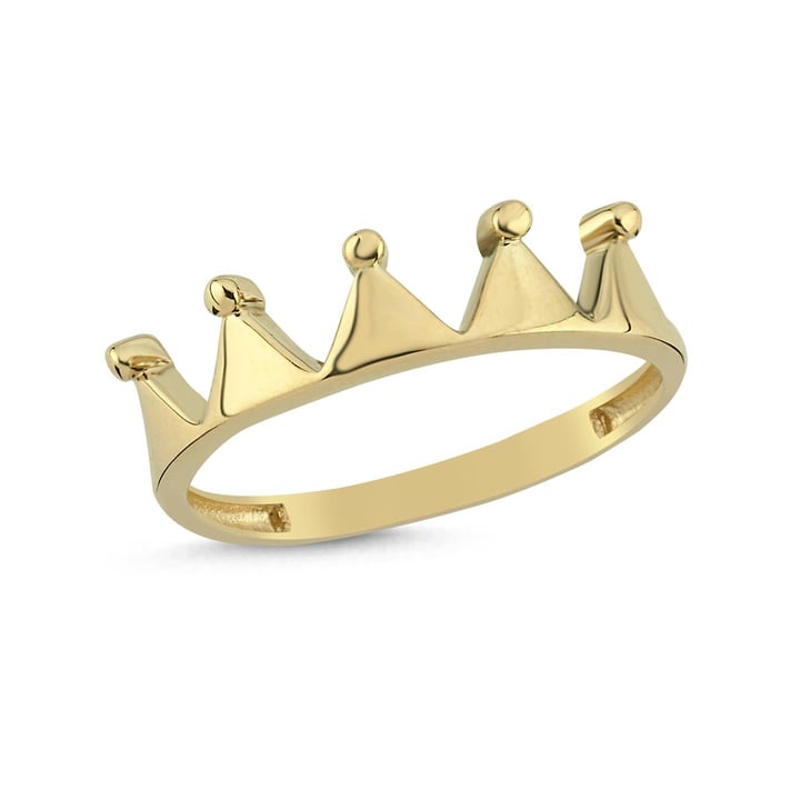 A ring fit for a queen! This 14K yellow gold crown ring is a symbol of elegance and strength in a minimal design. With its delicate yet regal silhouette, it effortlessly blends sophistication with versatility, making it perfect for stacking or wearing solo.