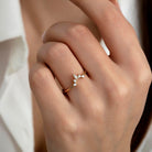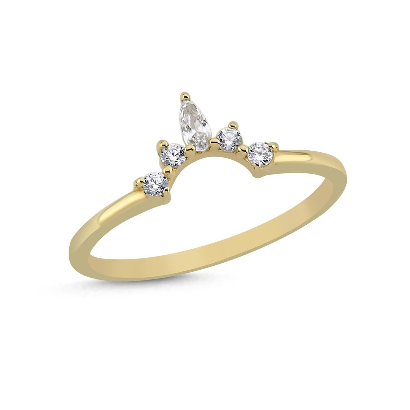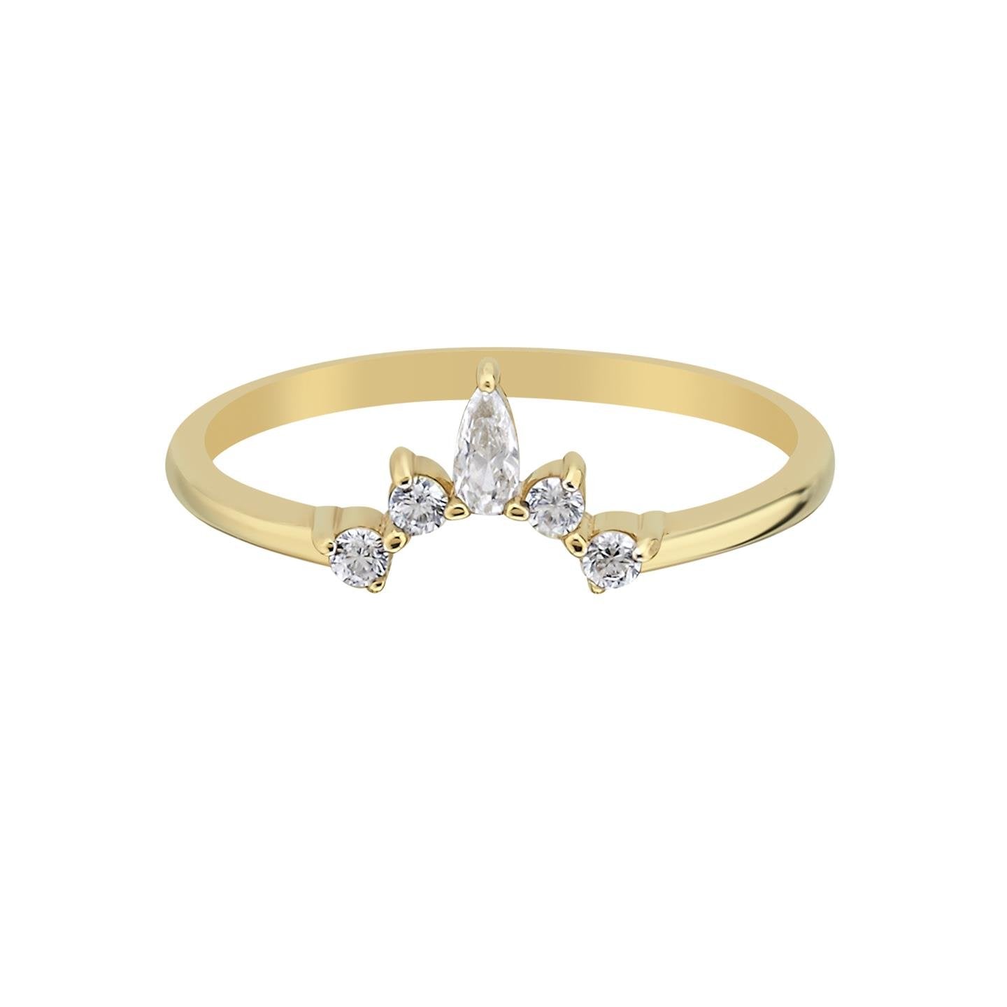 Add a regal touch to your look with this 14K Gold Stone Crown Ring. Featuring a teardrop center stone surrounded by round stones, this ring creates a crown-like silhouette that exudes elegance and charm. Perfect for stacking or wearing solo.