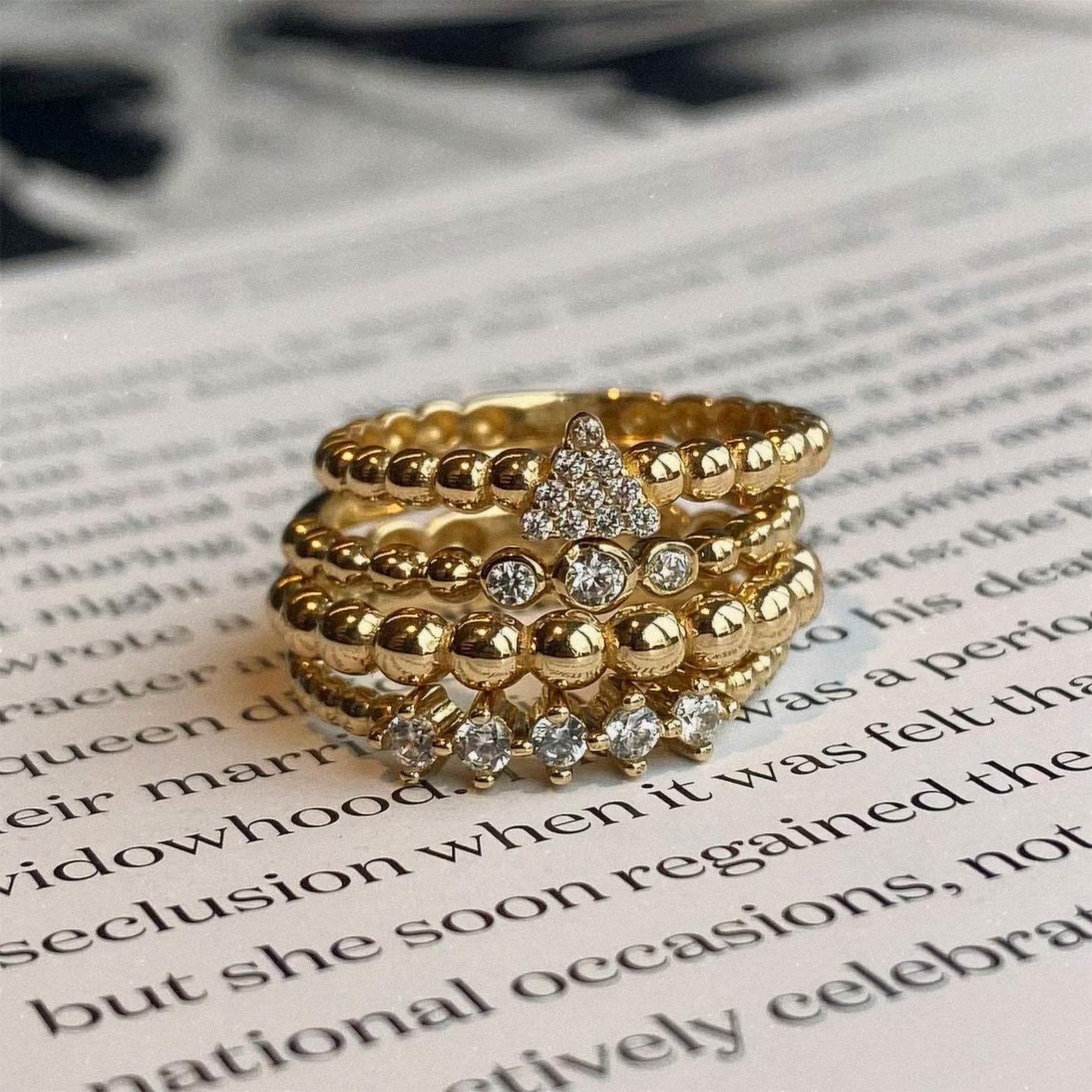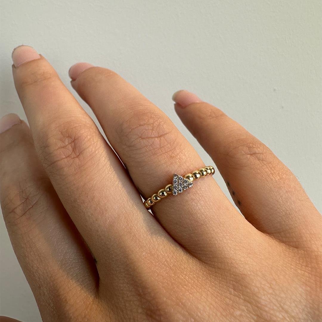 Delicate yet striking, this 14K Gold Pavé Triangle Beaded Ring adds a touch of modern charm to your jewelry collection. The triangle centerpiece is pavé-set with shimmering stones, beautifully contrasting against the polished beaded band for a textured finish.