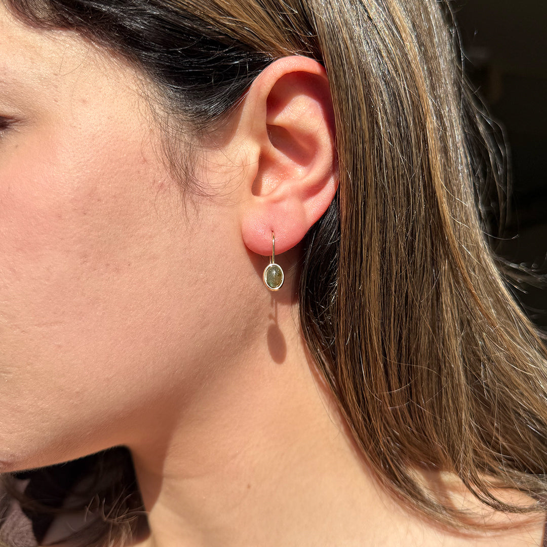 14K Gold Vintage Labradorite Natural Stone Drop Earrings