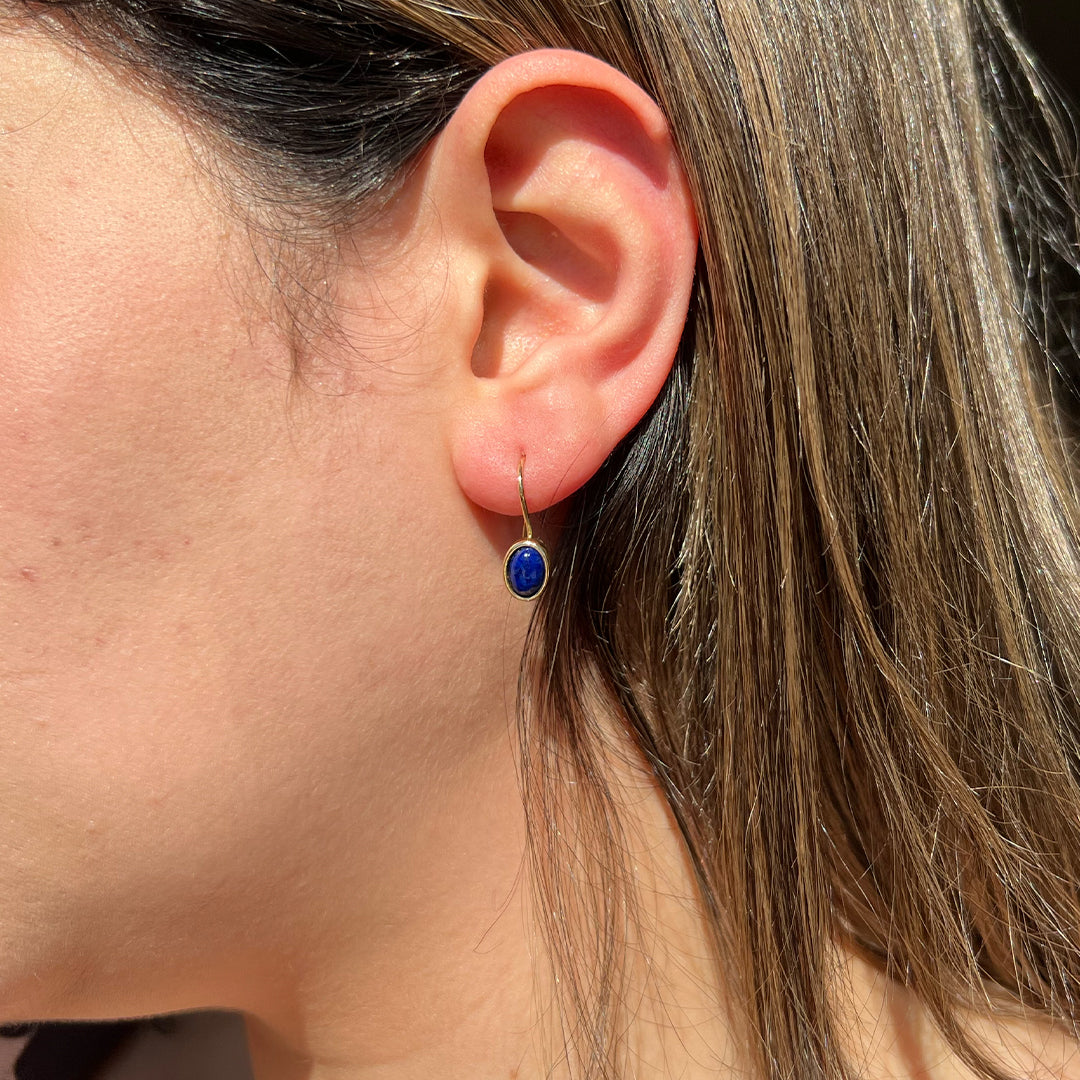 Complete your look with these beautifully crafted lapis drop earrings, perfect for adding a touch of vintage elegance to any outfit.