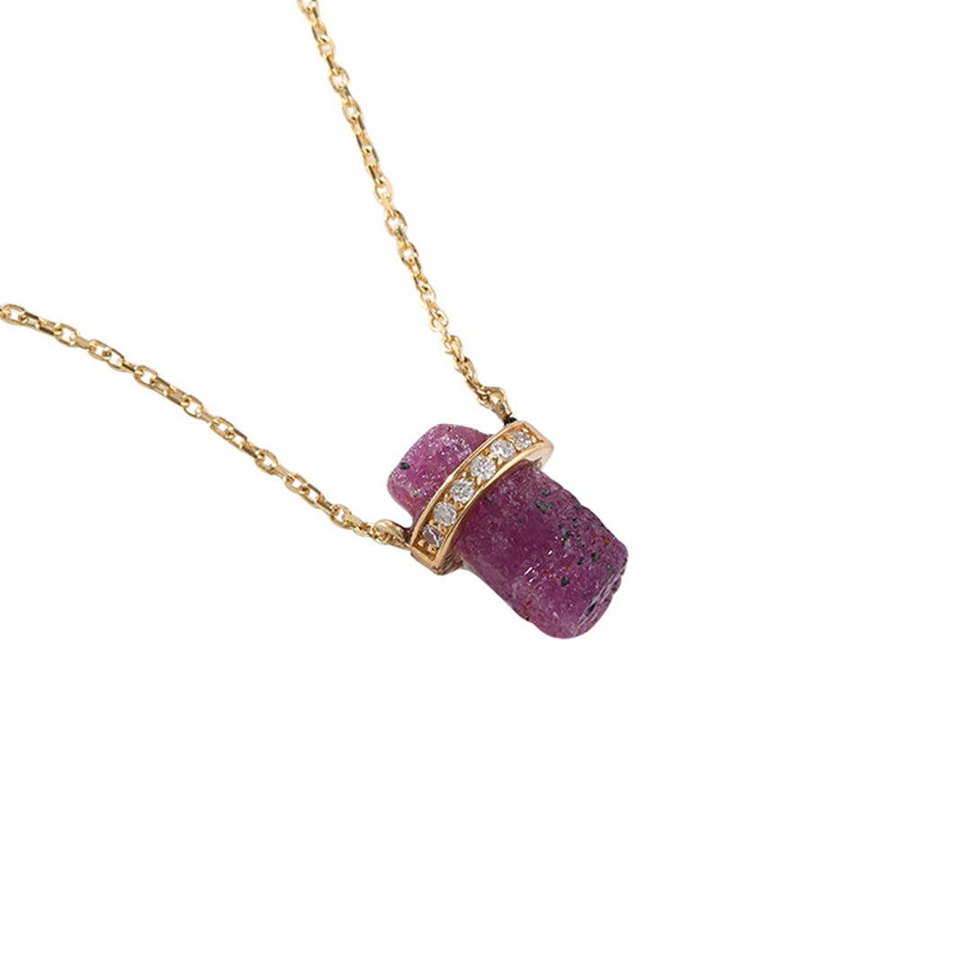 18K Gold Raw Cut Ruby Diamond Necklace /2