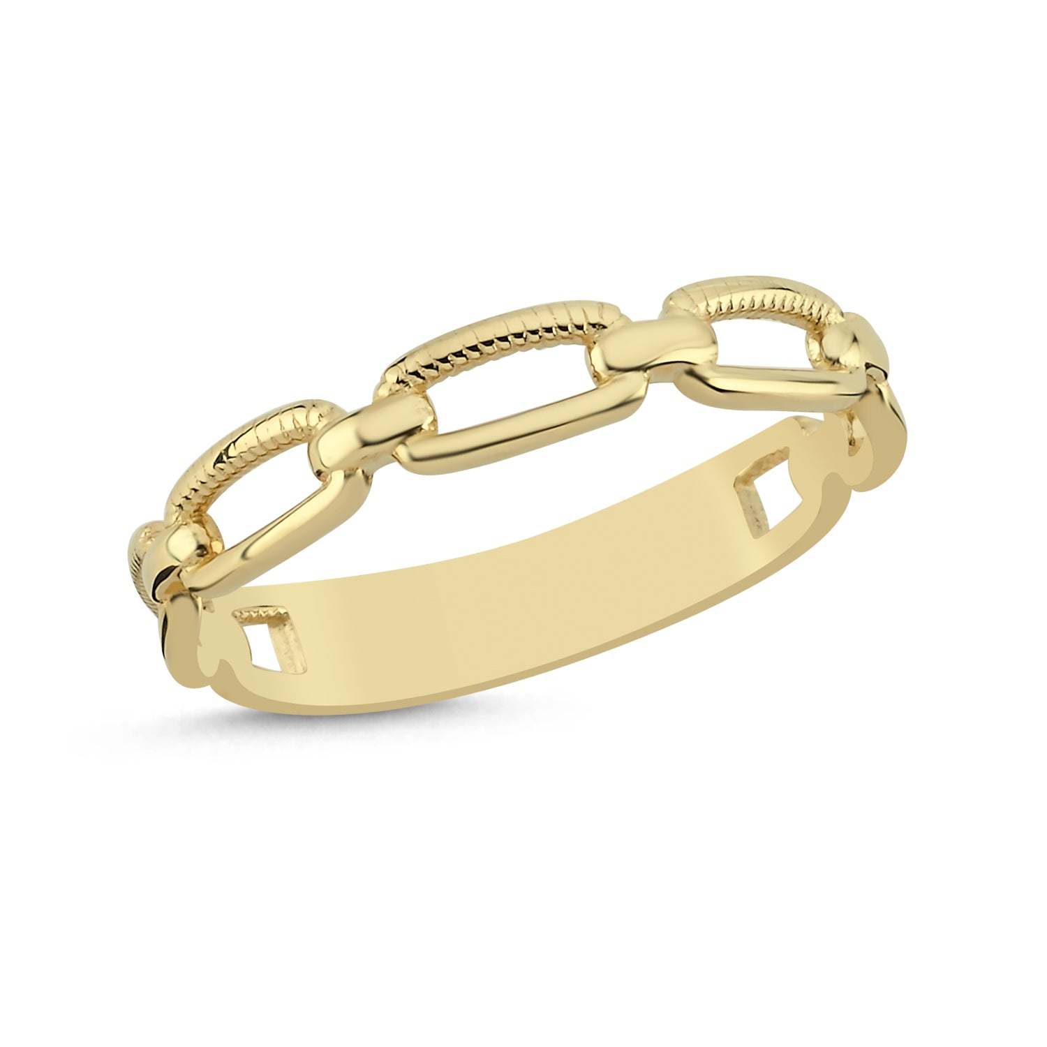 14K Gold Polished Chain Link Stackable Dainty Ring