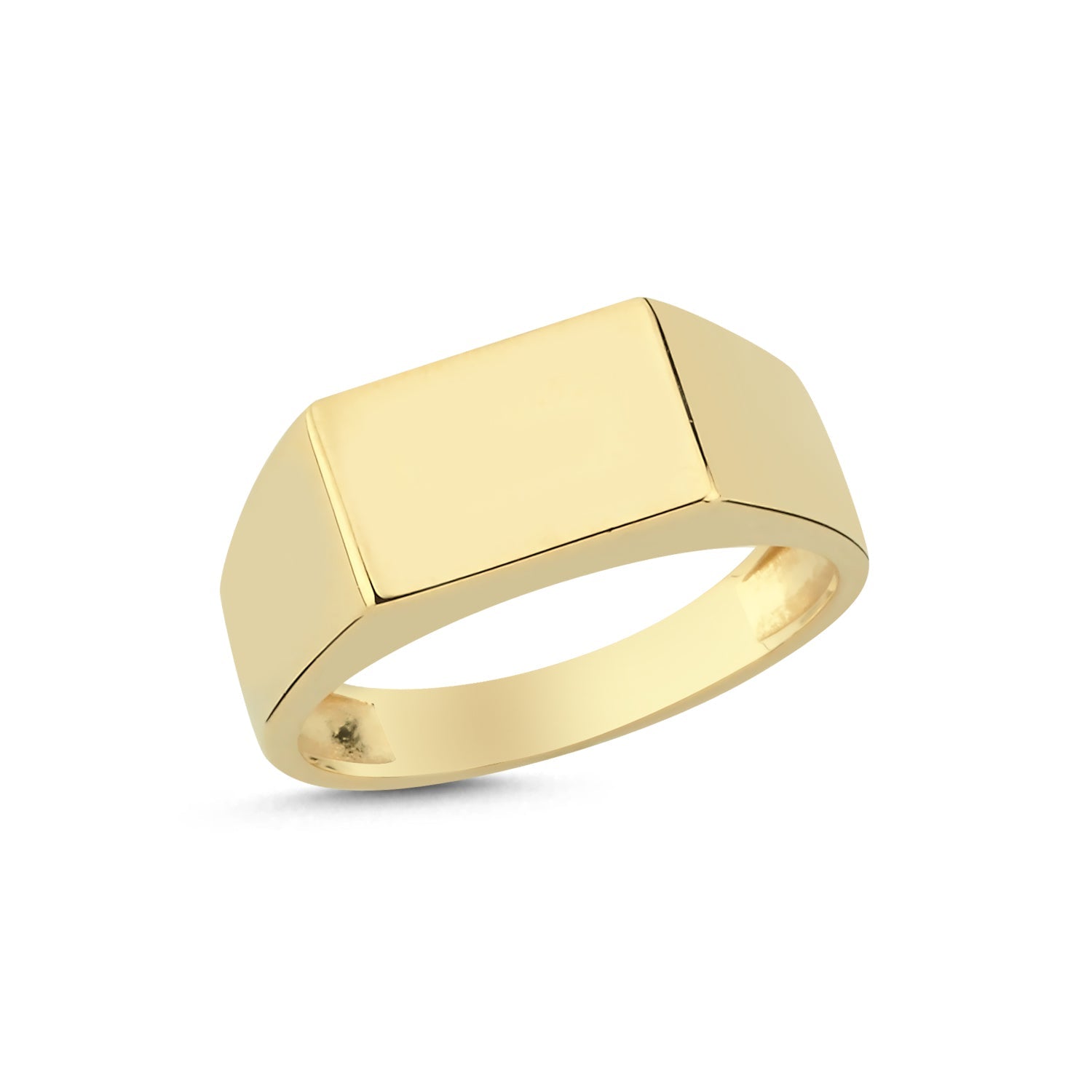 Redefine timeless strength with this 14K gold bold signet ring. Featuring a clean rectangular face and smooth edges, this piece radiates sleek minimalism while offering room for engraving to make it truly personal.