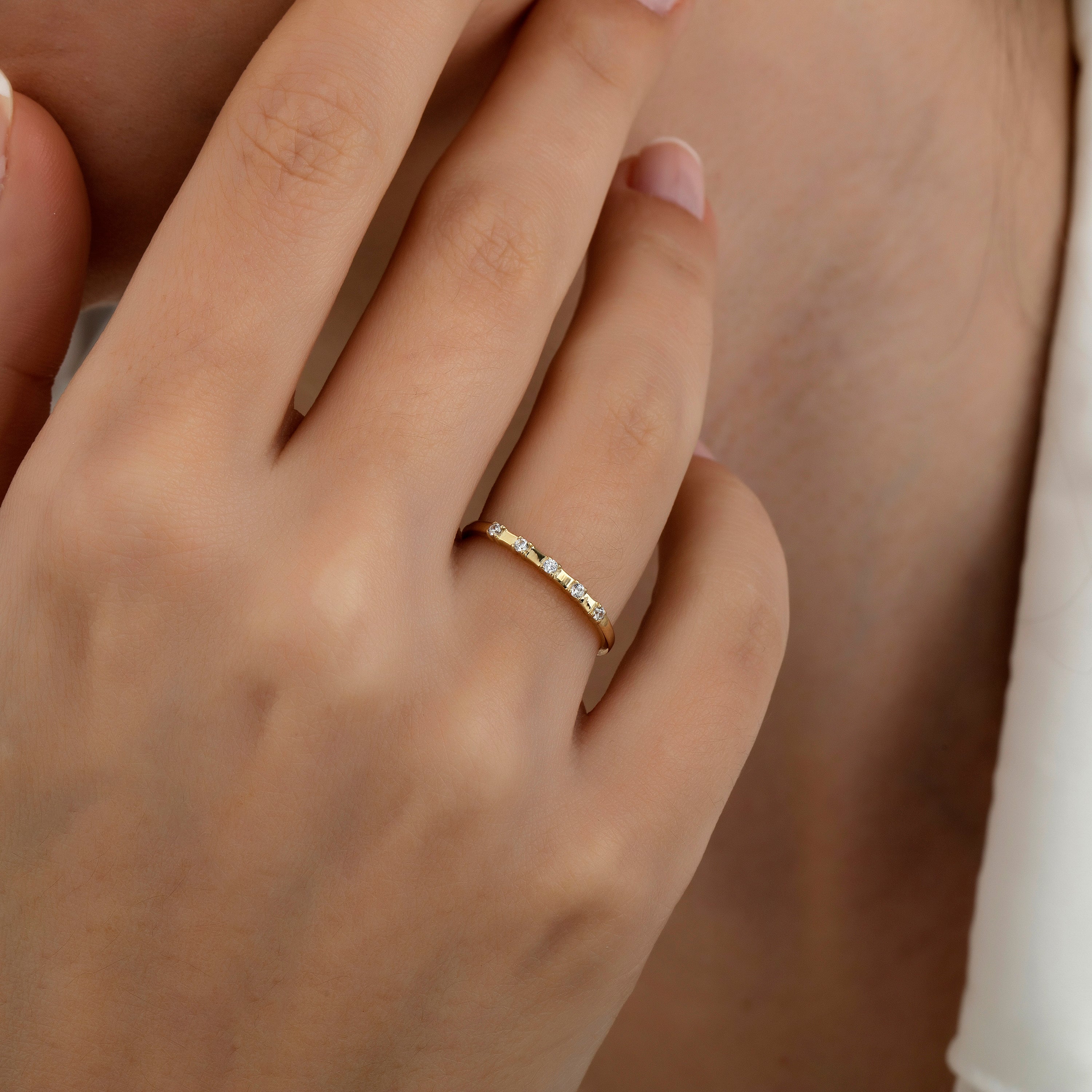 Define your stack with the elegant simplicity of this 14K gold Paris Brest dainty ring. Featuring five brilliant stones set in a smooth, high-polish band, this piece is designed for versatility, classic on its own or stacked with other favorites.