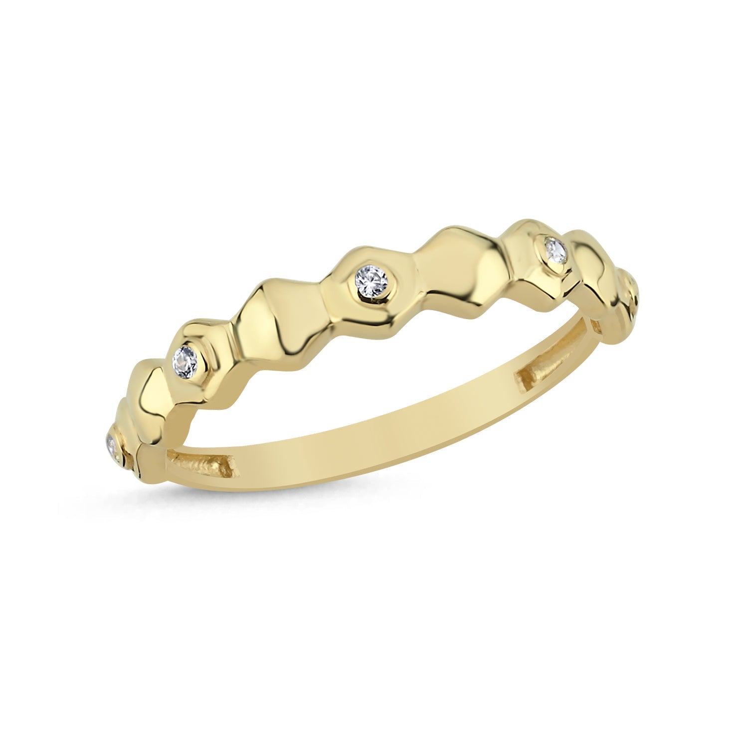 Enhance the everyday with this charming 14K gold petite ring. Its faceted band design catches the light beautifully, while the spaced sparkle adds just the right touch of elegance to your look.
