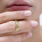 Let this sculptural ribbed ring take center stage in your jewelry rotation, perfect for stacking or solo wear to elevate any look.
