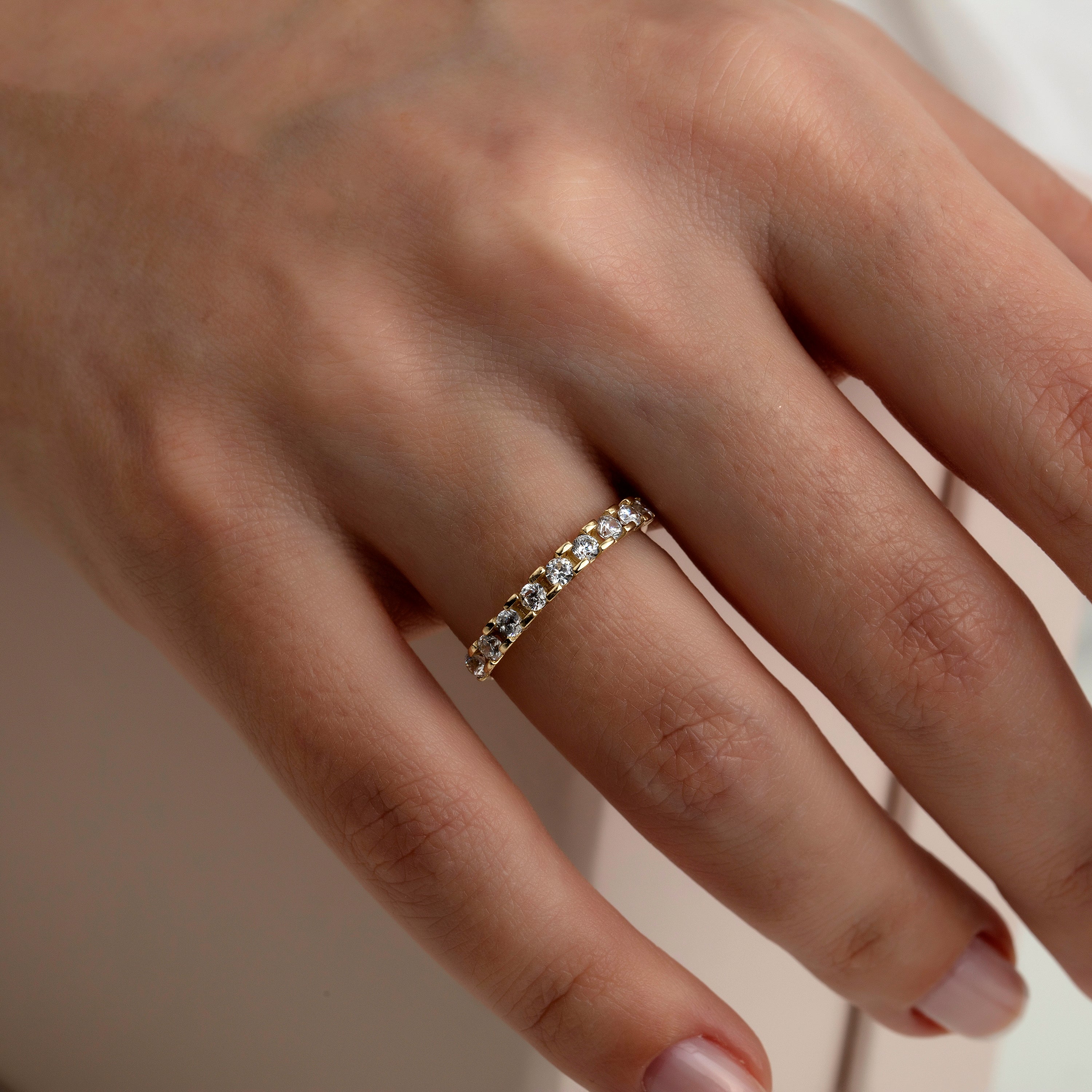 14K Gold Prong Set Half Eternity Stackable Dainty Ring