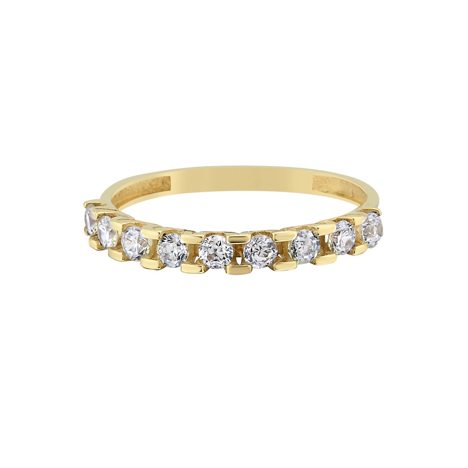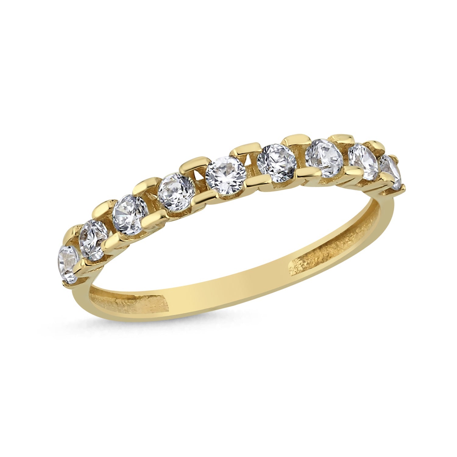 Let your style sparkle with this 14K gold half eternity ring featuring brilliant prong-set stones. Its balanced, eye-catching design offers the perfect amount of shine, ideal for layering with other dainty bands or wearing as a standalone piece for everyday elegance.