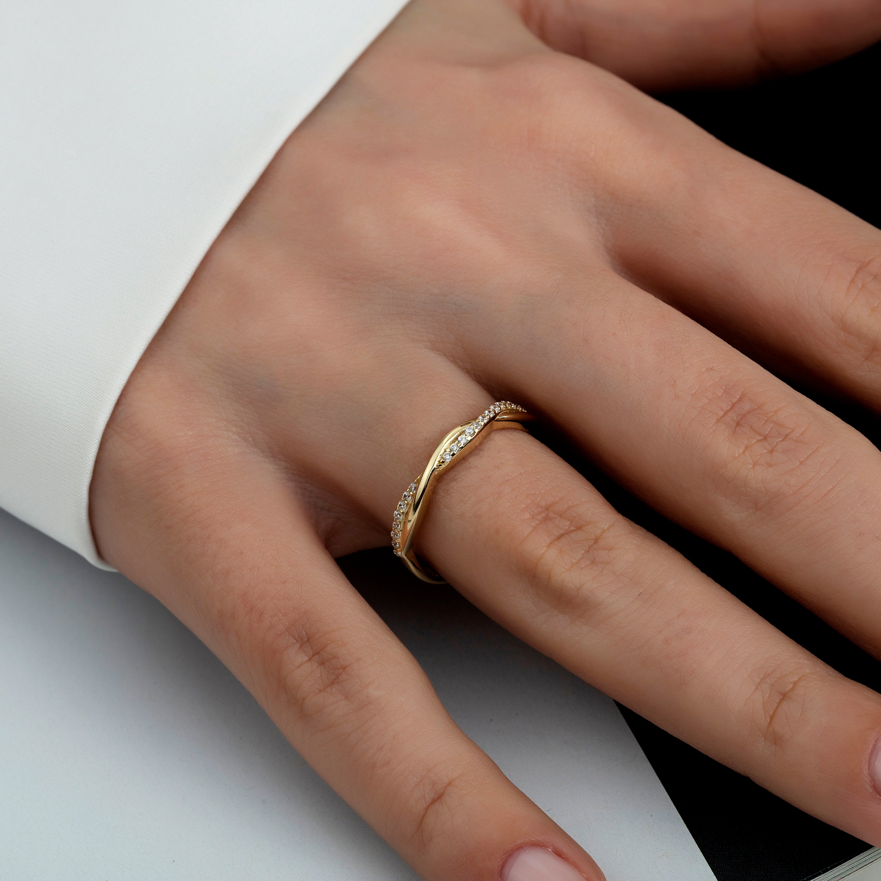 Elevate your ring stack with this graceful twist design that blends softness, sparkle, and modern elegance.